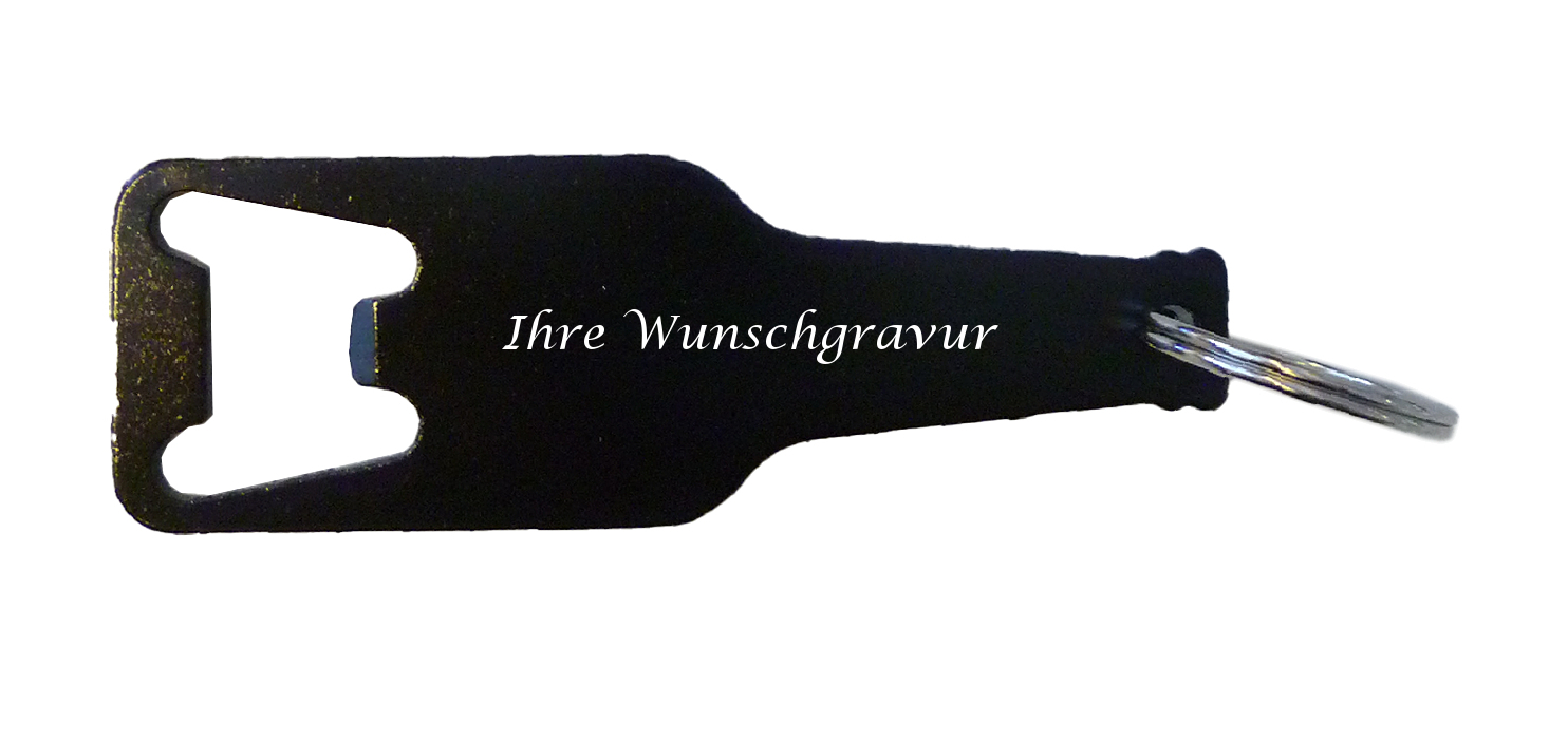 Schlüsselanhänger mit Gravur / mit Flaschenöffner / Farbe: schwarz