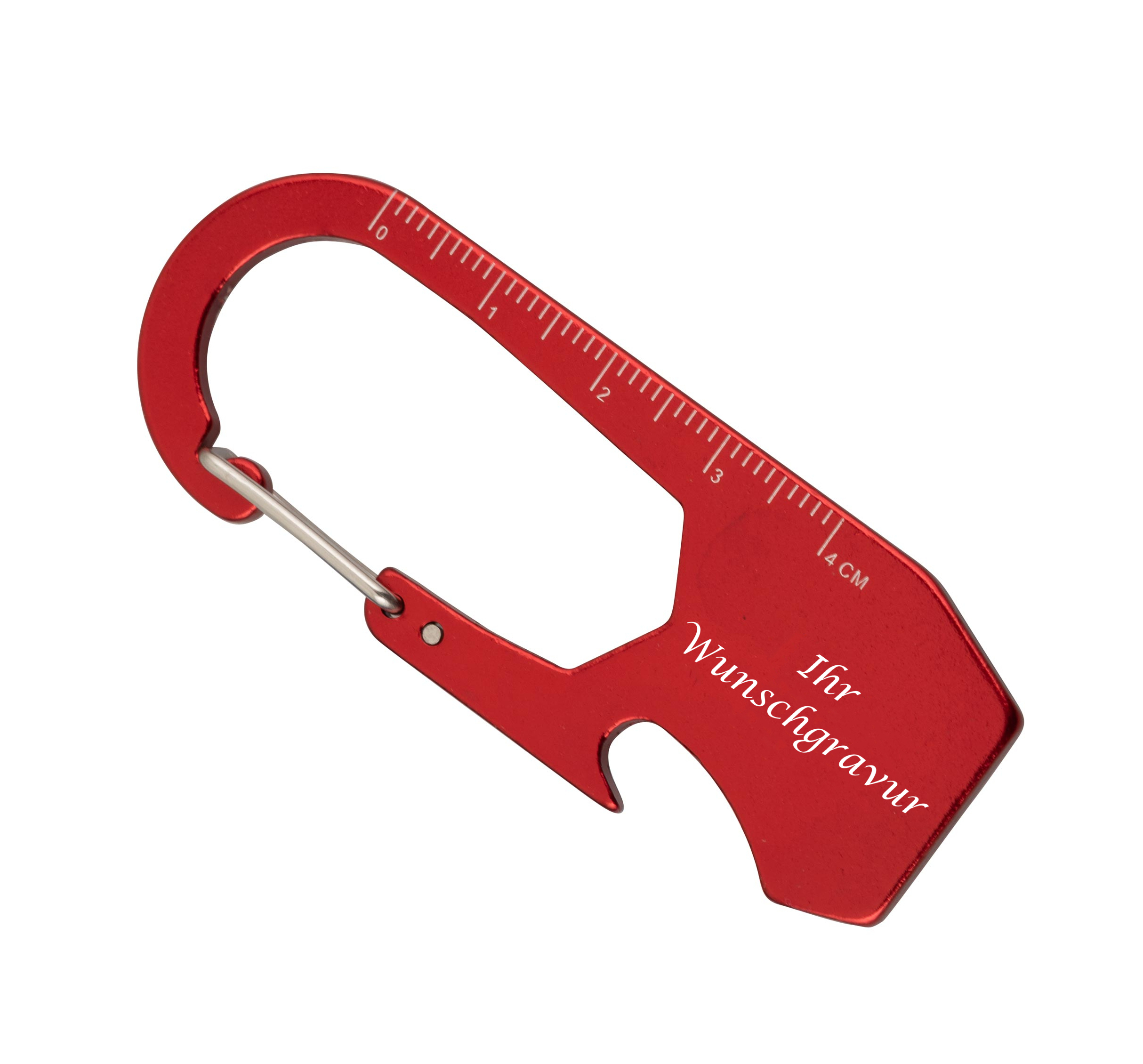 Schlüsselanhänger mit Gravur / mit Karabinerhaken,Flaschenöffner,Lineal / rot