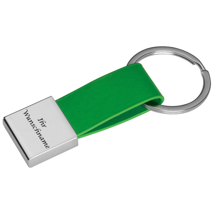 Schlüsselanhänger mit Gravur / mit Kunstleder-Bändchen / Farbe: grün