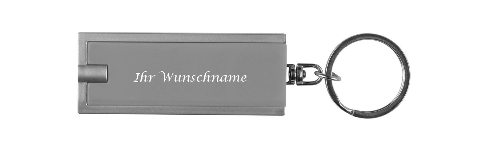 Schlüsselanhänger mit LED Taschenlampe mit Gravur / Farbe: grau/silbergrau