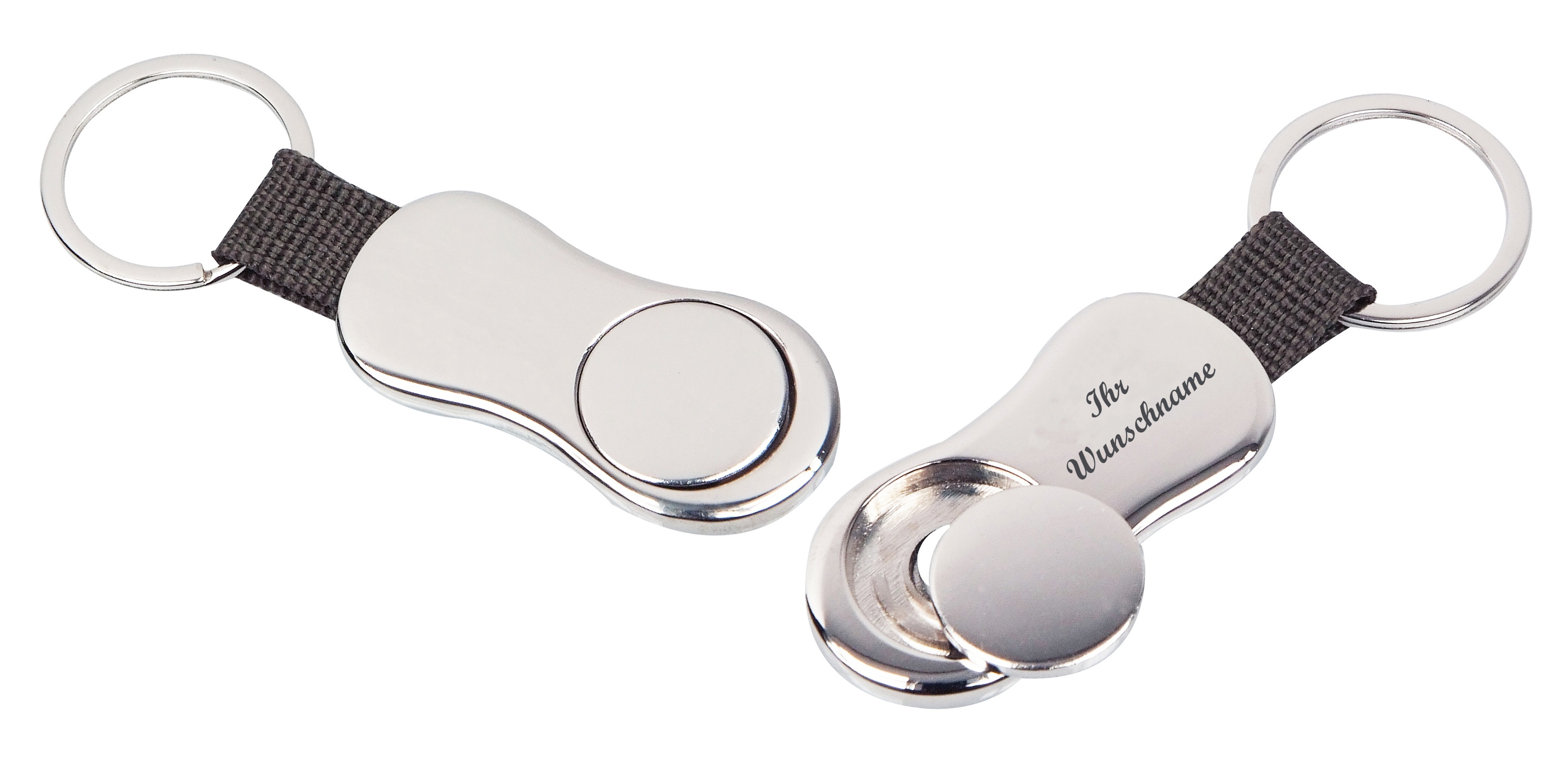 Schlüsselanhänger mit Namensgravur - mit Einkaufschip