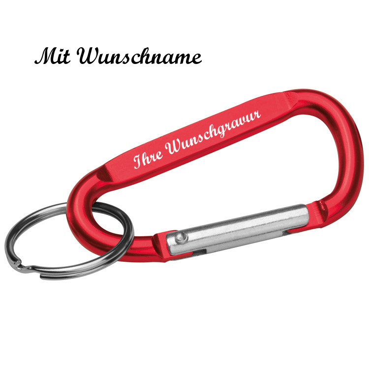 Schlüsselanhänger mit Namensgravur - mit Karabinerhaken - Farbe: rot