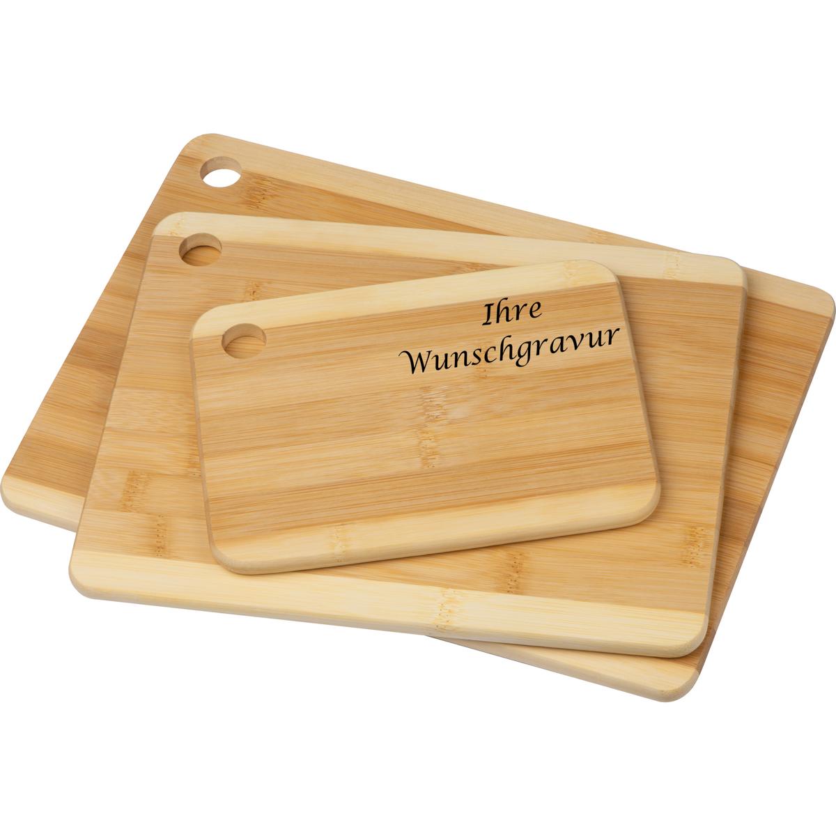 Produktinformationen "Schneidebretter Set mit Gravur / bestehend aus 3 verschiedenen Größen aus Bambus"