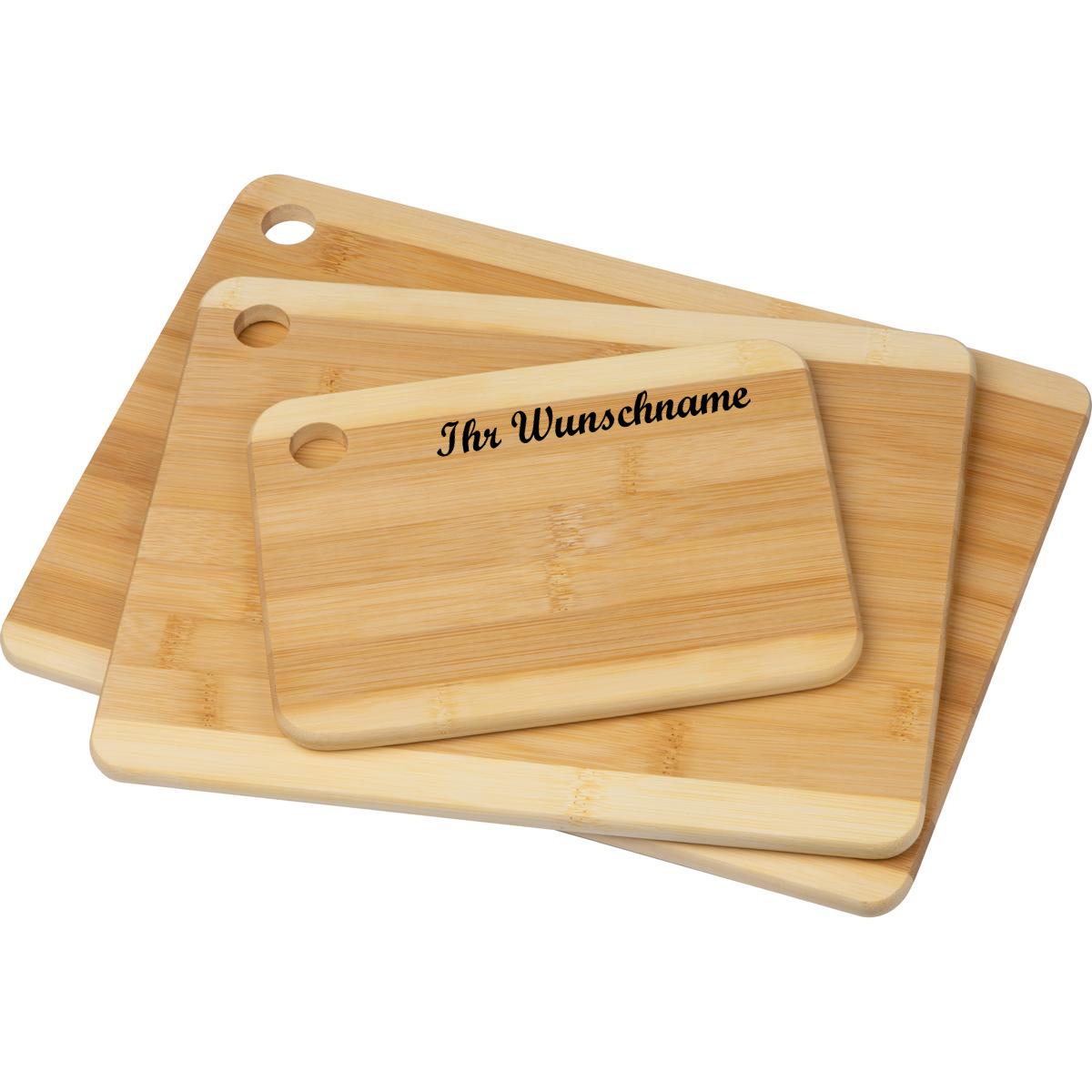 Schneidebretter Set mit Namensgravur - 3 verschiedenen Größen - aus Bambus