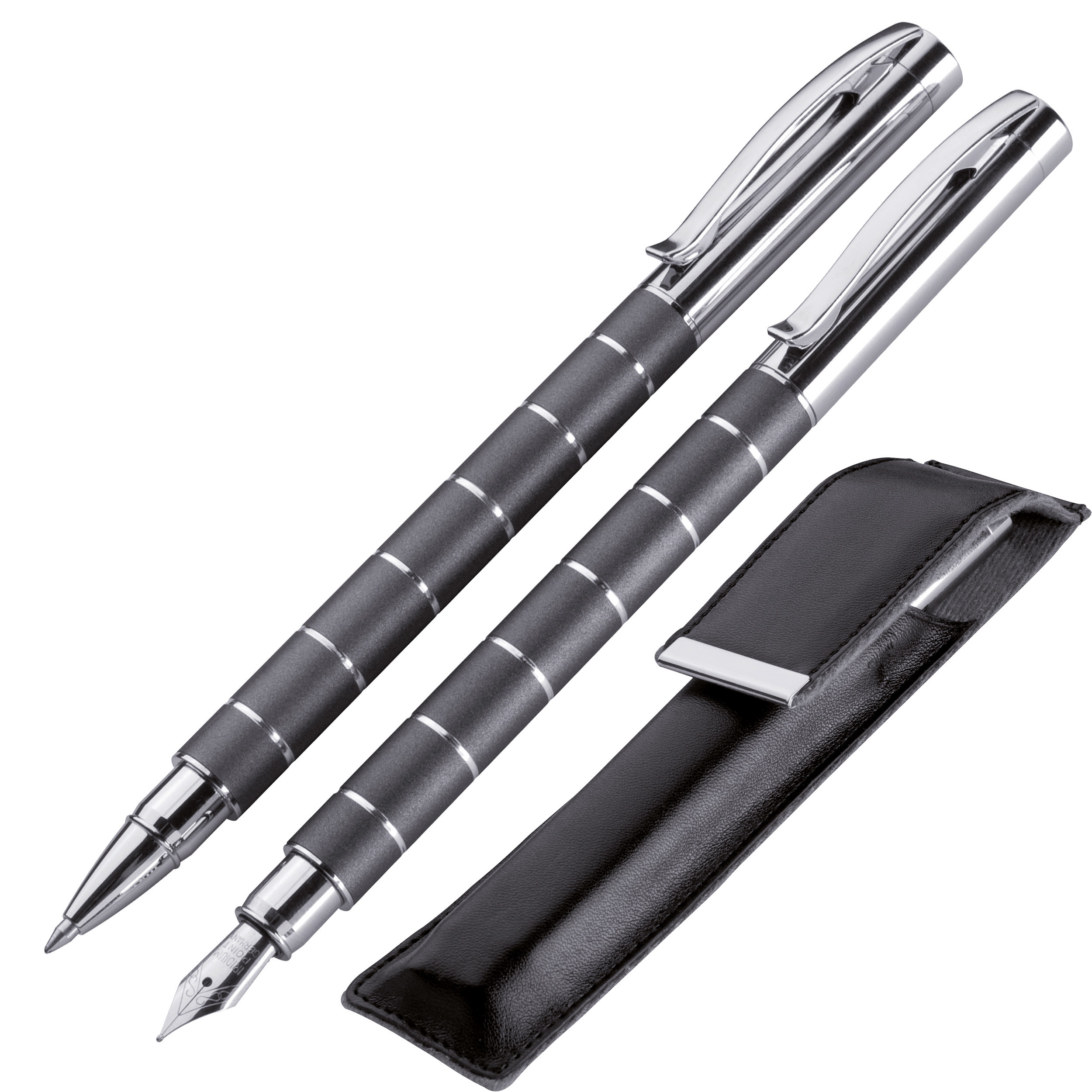 Schreibset aus Metall / bestehend aus Rollerball und Füllhalter