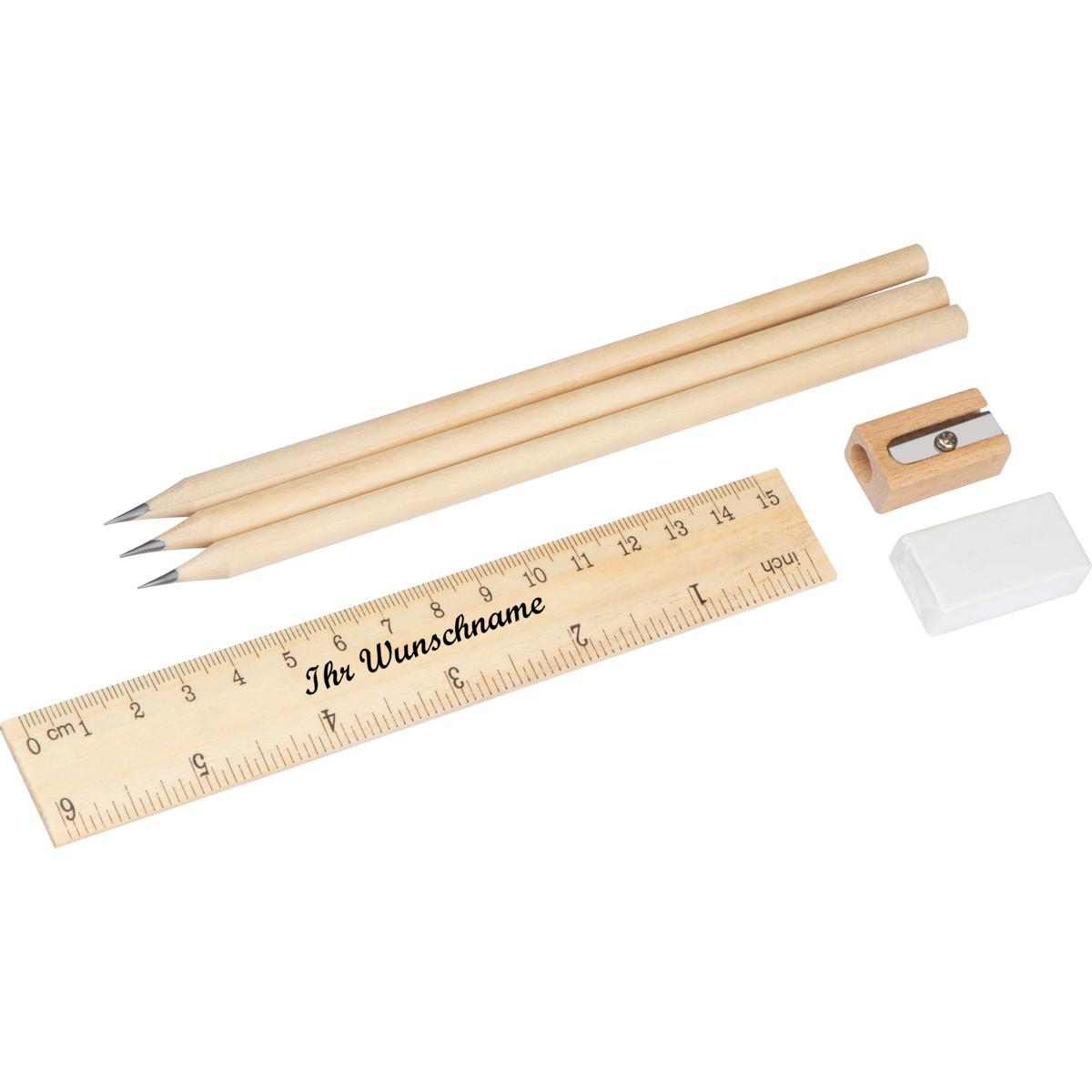 Schreibset mit 3 Bleistifte,Spitzer,Radierer,Lineal mit Namensgravur