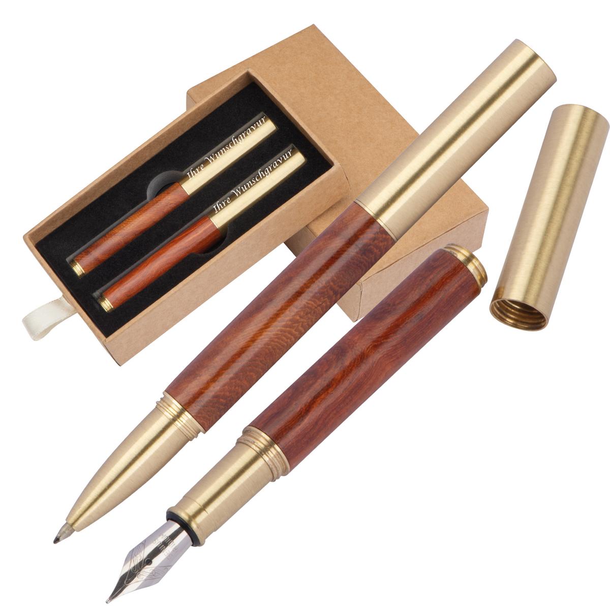 Schreibset mit Mini Füllfederhalter und Rollerball mit Gravur