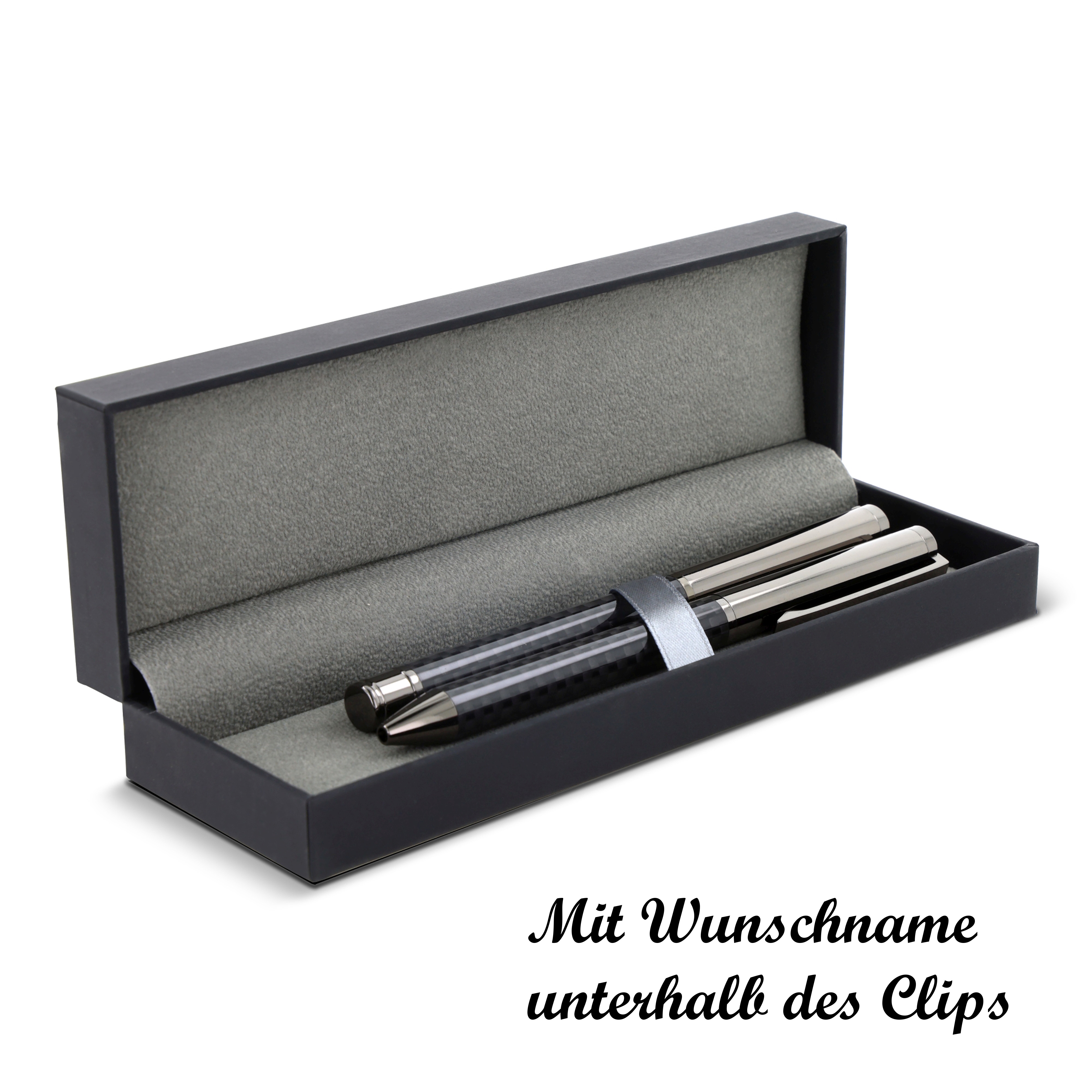 Produktinformationen "Schreibset mit Namensgravur - Kugelschreiber und Rollerball - Dark gun metal"