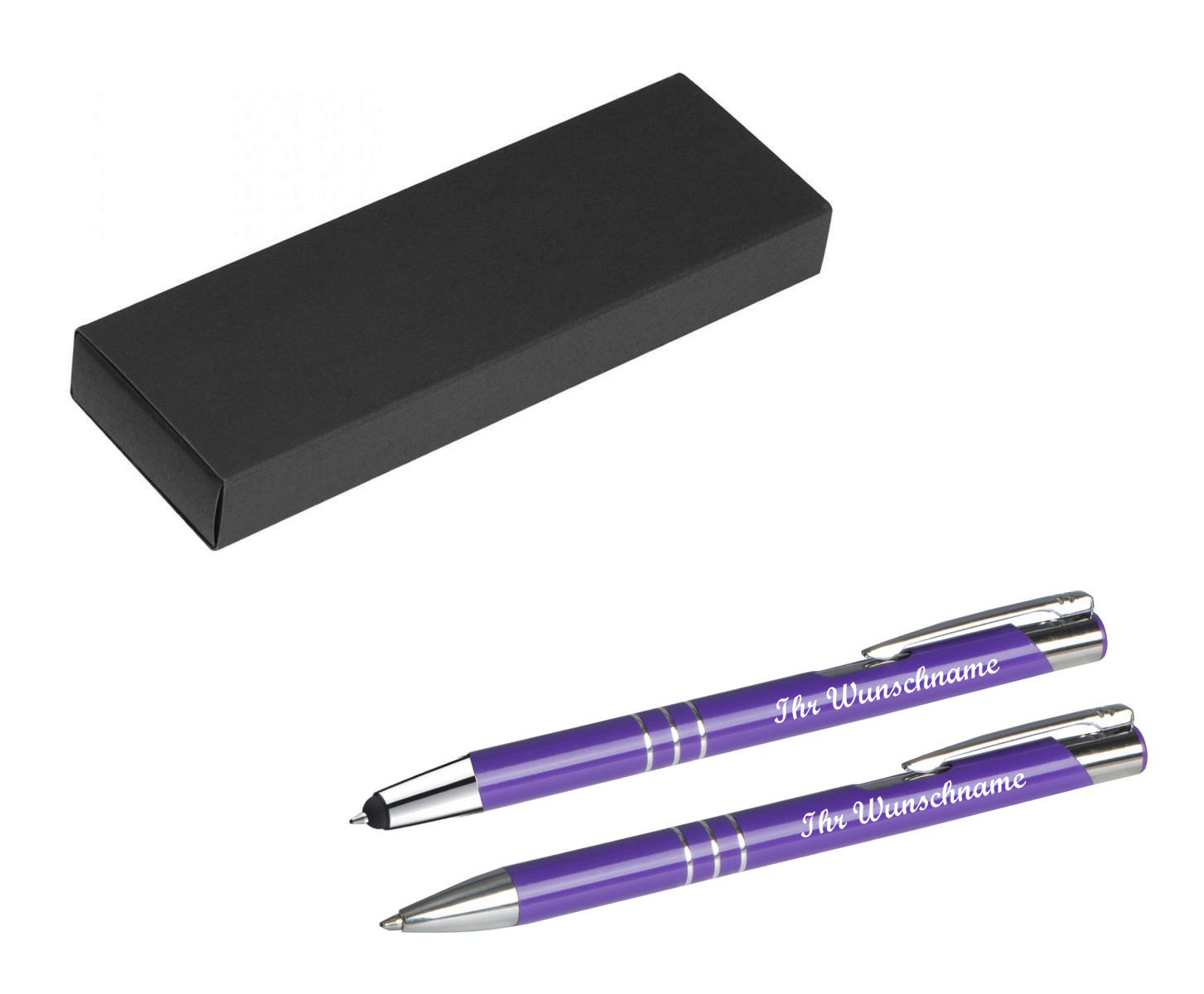 Produktinformationen "Schreibset mit Namensgravur - Touchpen Kugelschreiber + Kugelschreiber - violett"