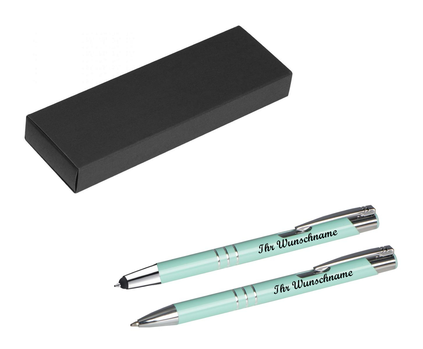 Schreibset mit Namensgravur - Touchpen + Kugelschreiber - pastell mint