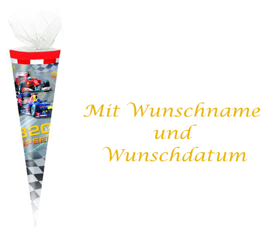 Schultüte mit gold gefärbter Gravur / 35cm / rund / Tüllverschluss / "Speed"