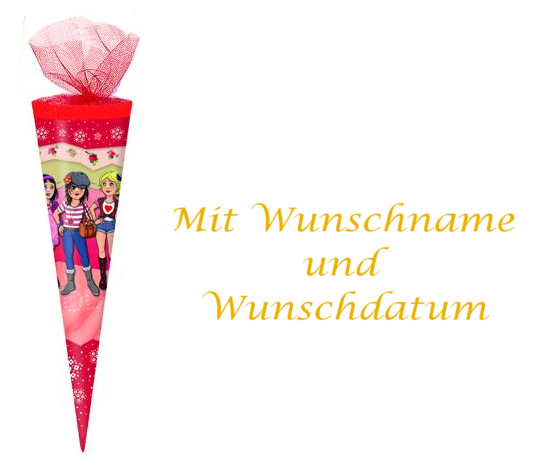 Schultüte mit gold gefärbter Gravur /35cm / rund / Tüllverschluss / "Topmodel"