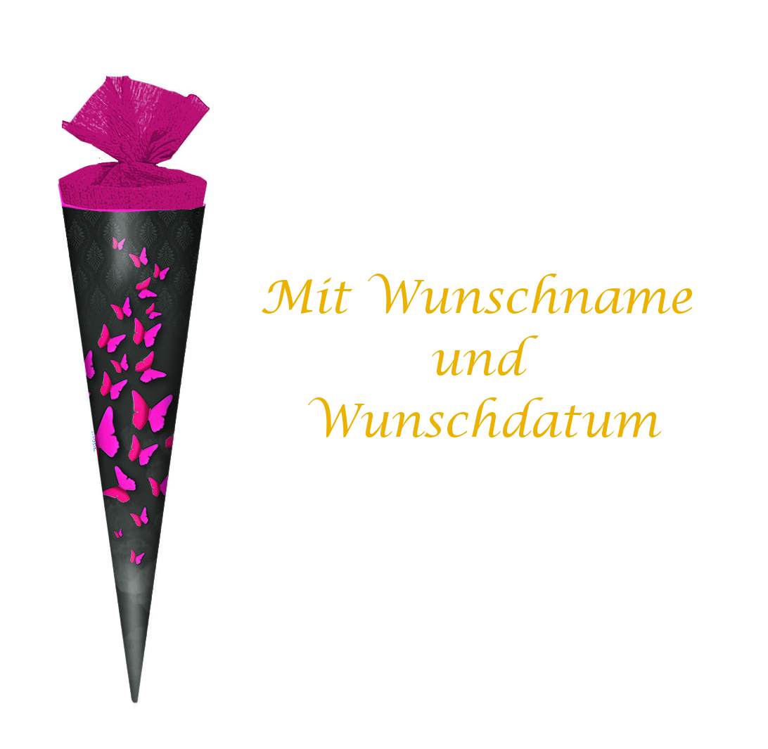 Schultüte mit gold gefärbter Gravur / Länge: 35cm / rund / "Schmetterlinge"