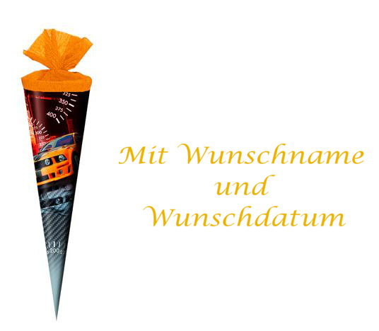 Schultüte mit gold gefärbter Gravur / Zuckertüte / Länge:35cm / rund / "Citycar"