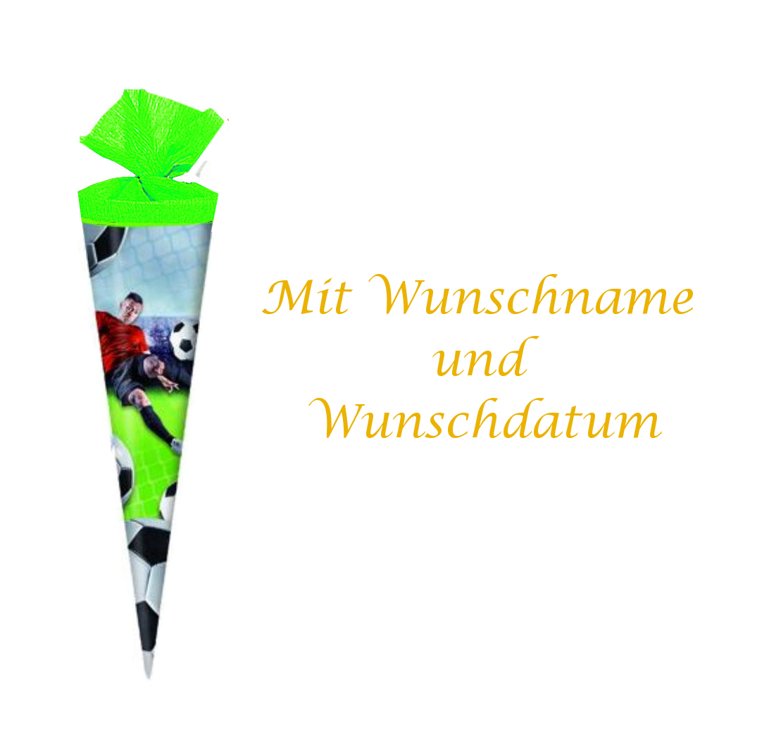 Schultüte mit gold gefärbter Gravur / Zuckertüte / Länge:35cm / rund / "Fußball"