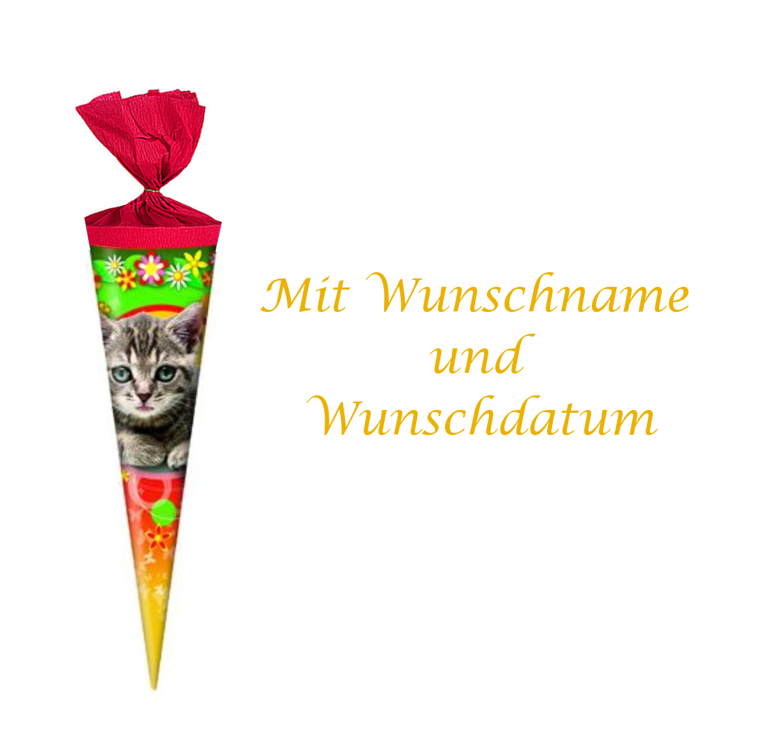 Produktinformationen "Schultüte mit gold gefärbter Gravur / Zuckertüte / Länge: 35cm / rund / "Katze""