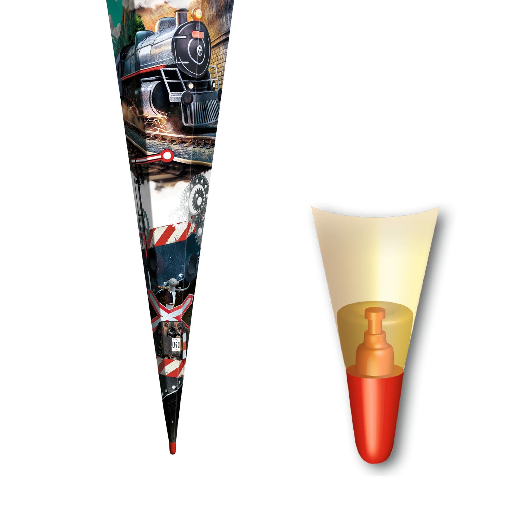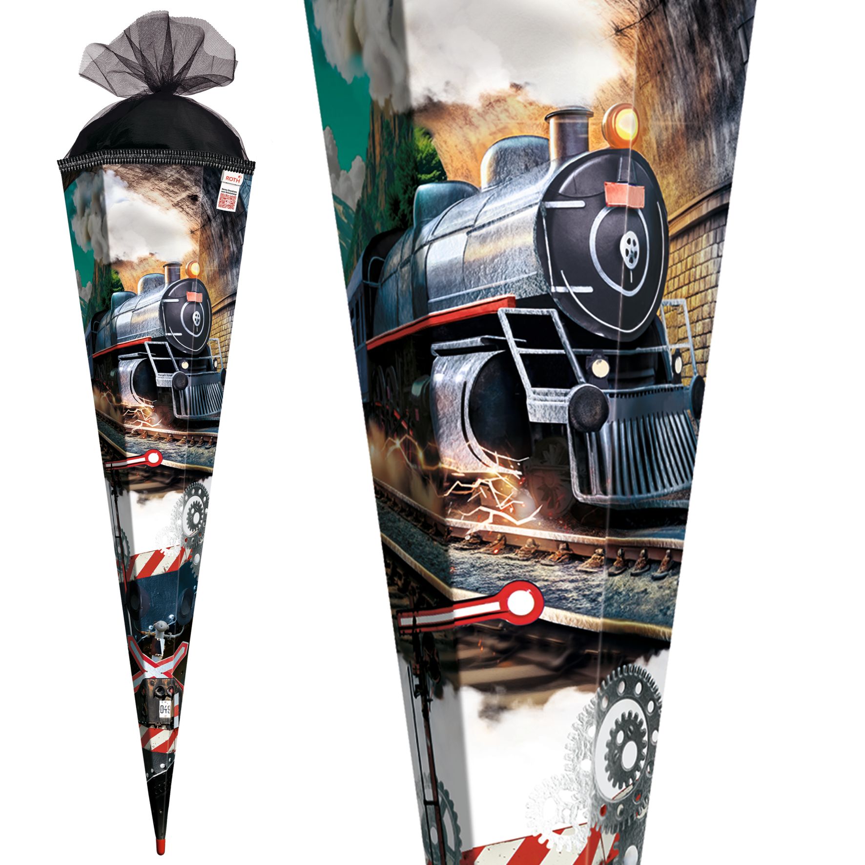 Produktinformationen "Schultüte mit Gravur / Zuckertüte / 85cm / eckig / mit Glitzerborte / "Dampflok""