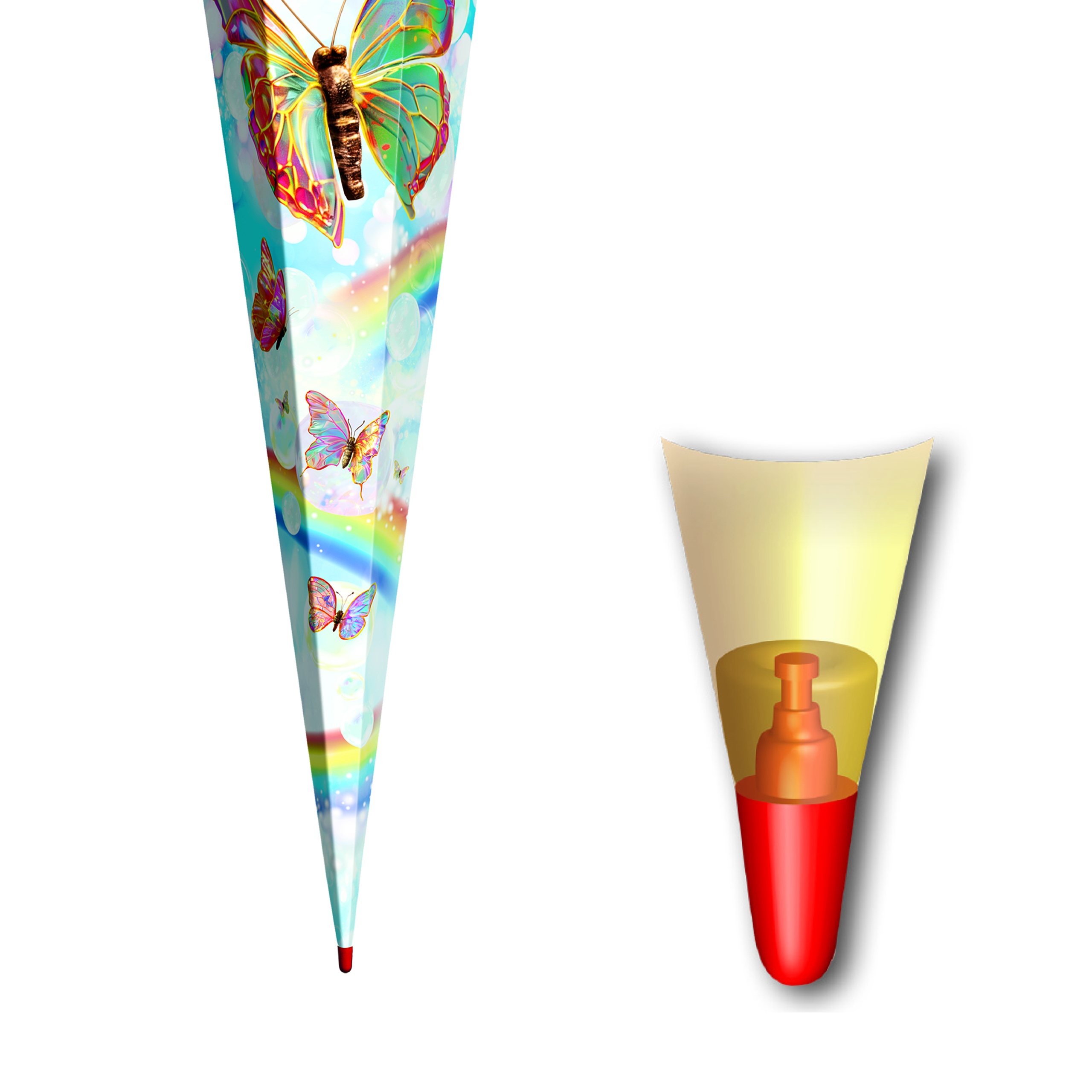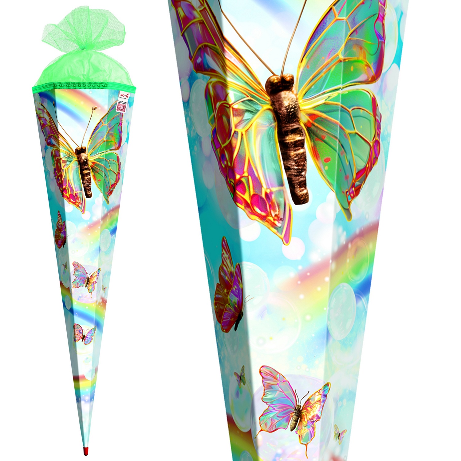 Produktinformationen "Schultüte mit Gravur / Zuckertüte / 85cm / eckig / "Rainbow Butterfly""