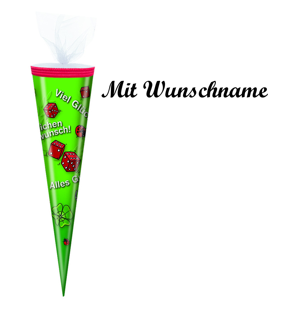 Schultüte mit Namensgravur - 35cm - rund - Tüllverschluss - "Viel Glück"