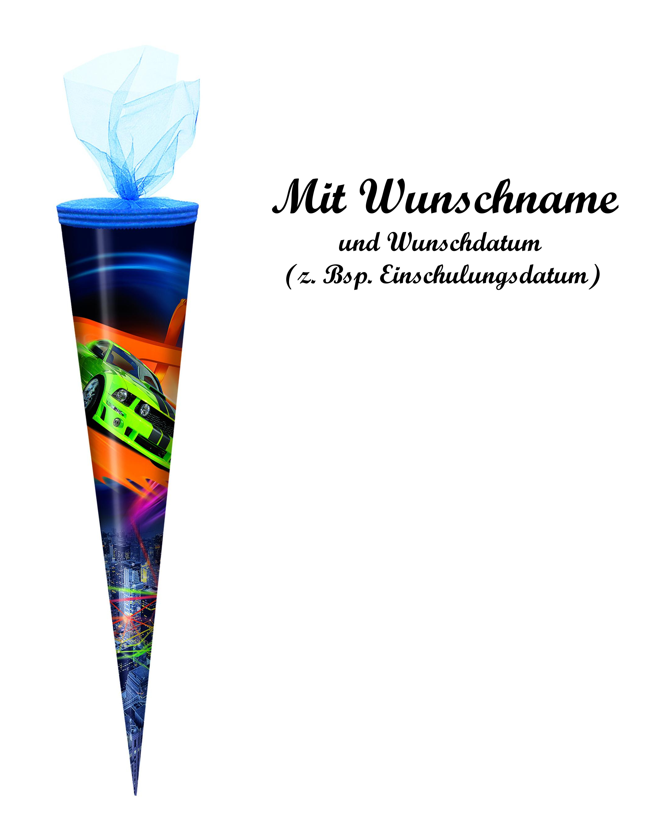 Schultüte mit Namensgravur - Zuckertüte - 70cm - rund - "Sportwagen"
