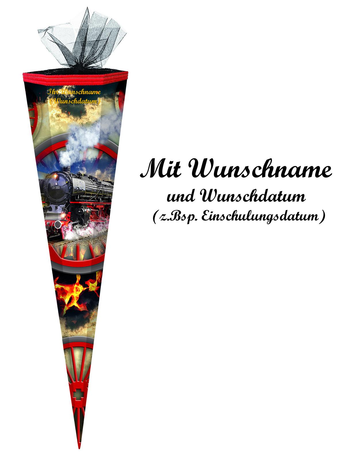 Schultüte mit Namensgravur - Zuckertüte - 85cm - eckig - "Dampflokomotive"