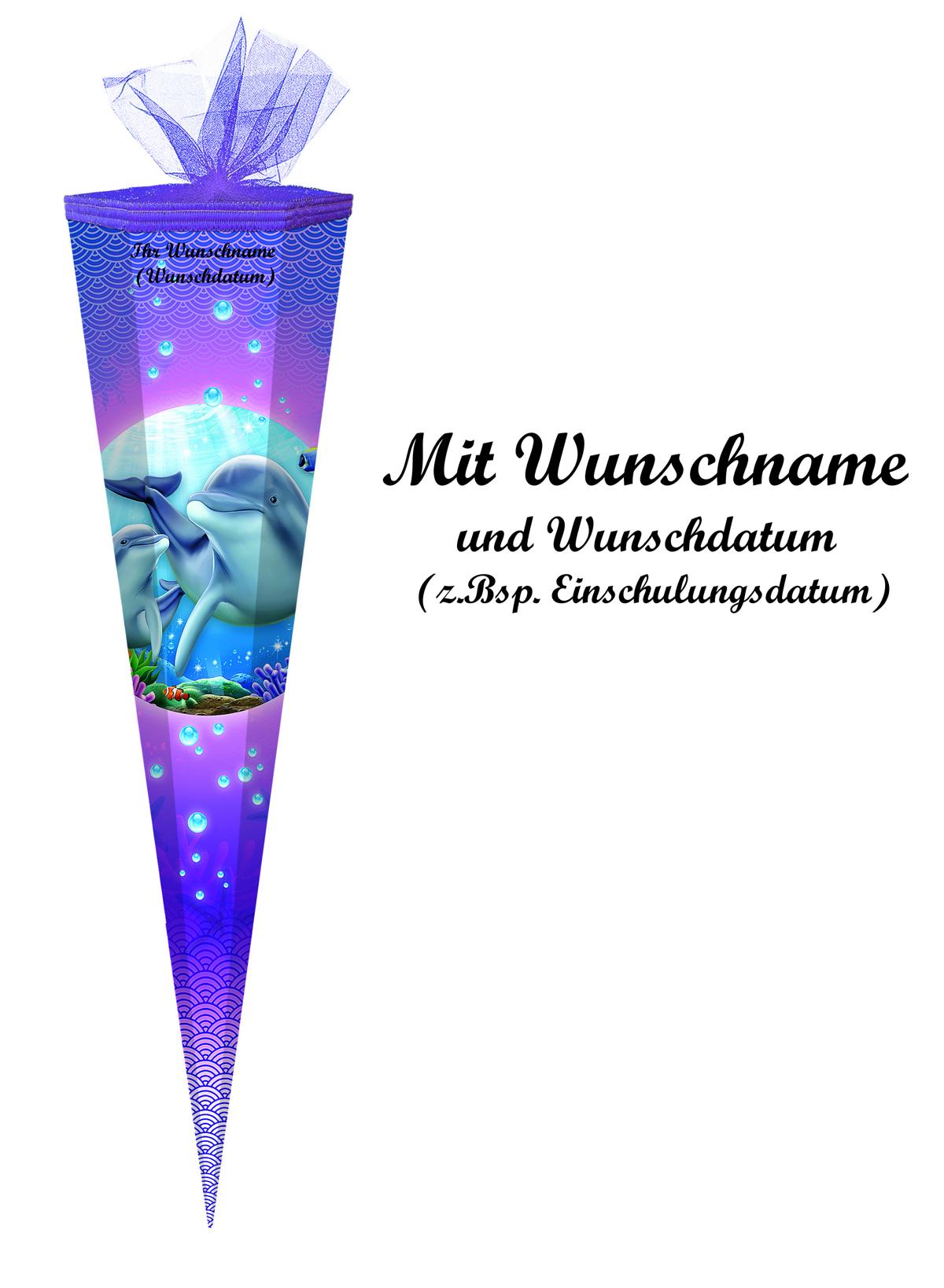 Produktinformationen "Schultüte mit Namensgravur - Zuckertüte - 85cm - eckig - "Delfin""
