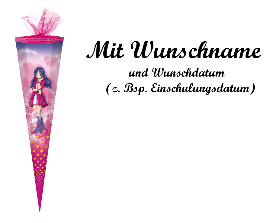 Schultüte mit Namensgravur - Zuckertüte - 85cm - eckig - "Girlie"