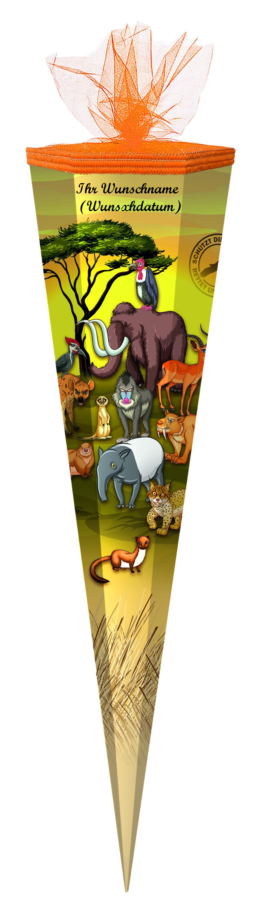 Schultüte mit Namensgravur - Zuckertüte - 85cm - eckig - "Tiere"