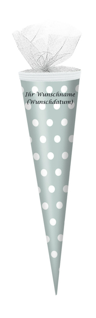 Schultüte mit schwarz gefärbter Gravur / Zuckertüte / 50cm / rund / Farbe: grau