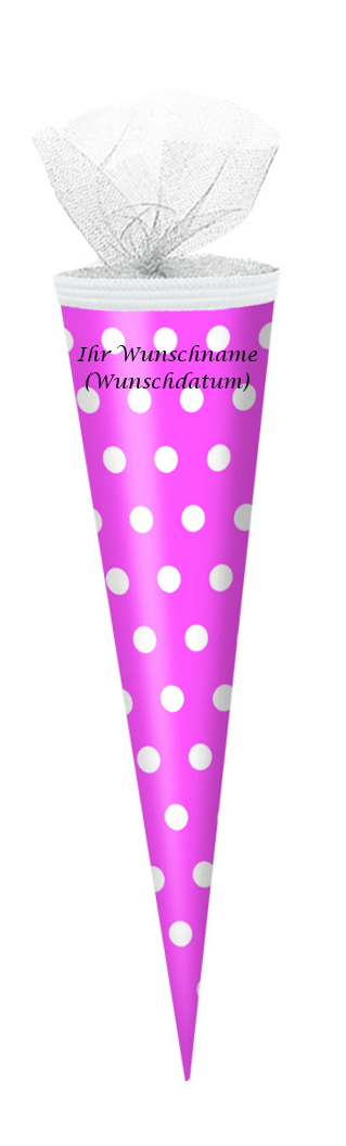 Schultüte mit schwarz gefärbter Gravur / Zuckertüte / 50cm / rund / Farbe: pink