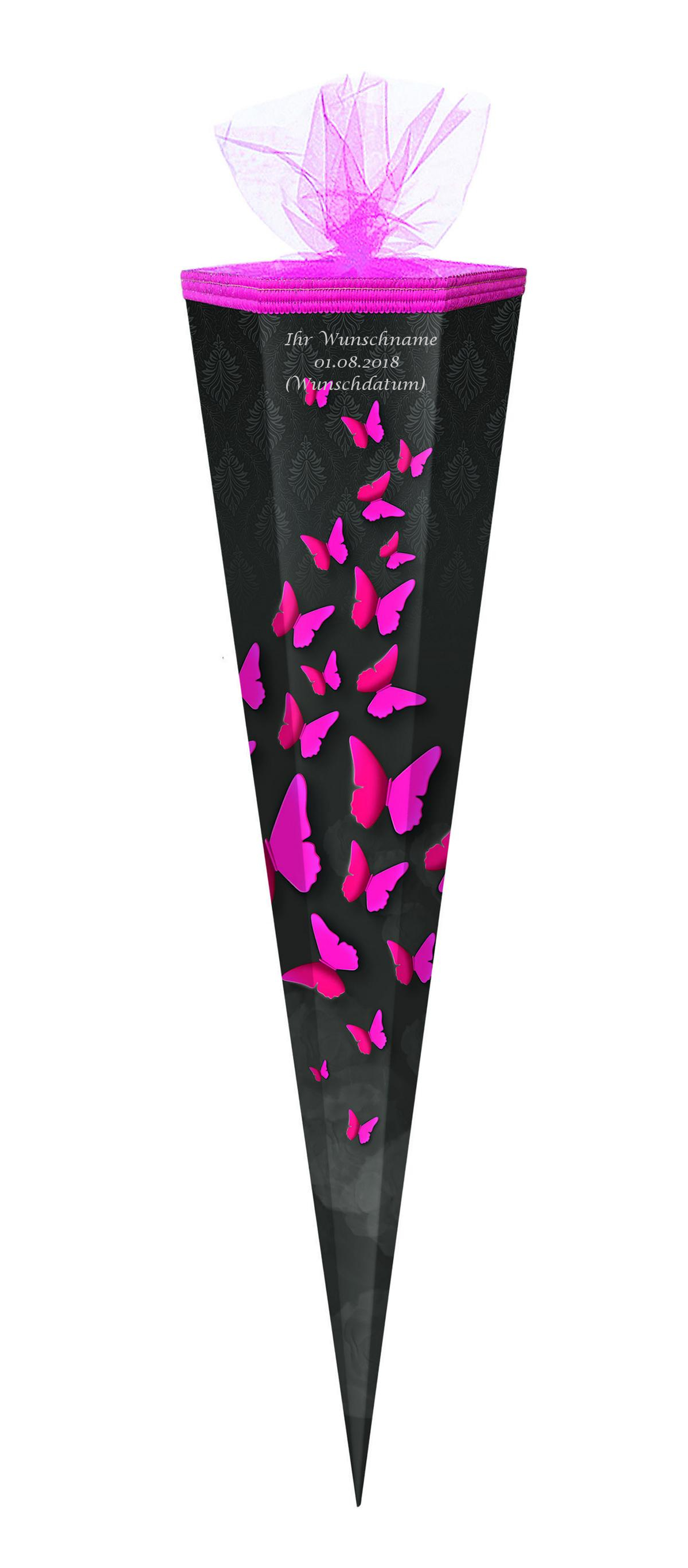 Produktinformationen "Schultüte mit silbergefärbter Gravur / 85cm / eckig / "Schmetterlinge""
