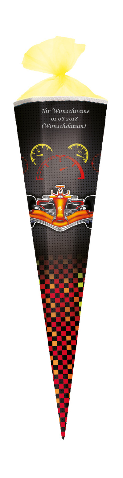 Produktinformationen "Schultüte mit silbergefärbter Gravur Schultüte / 85cm / eckig / "Rennauto""