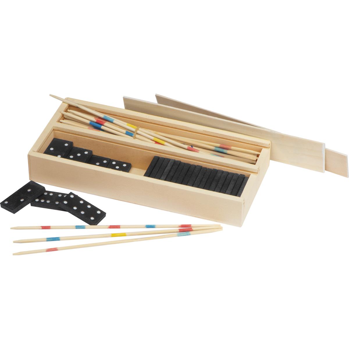 Produktinformationen "Spieleset in einer Holzbox mit Mikado und Domino"