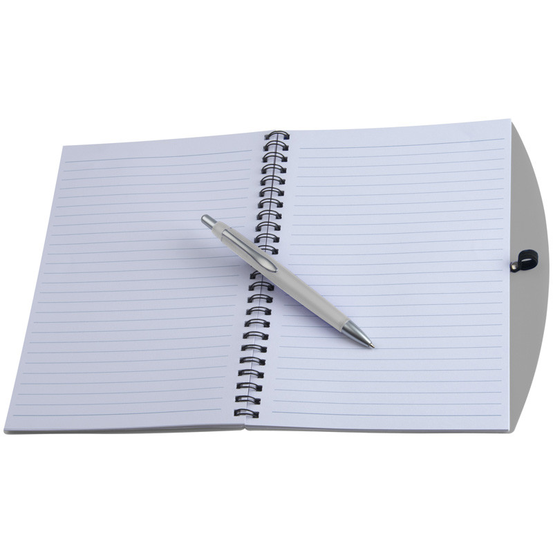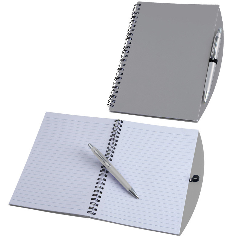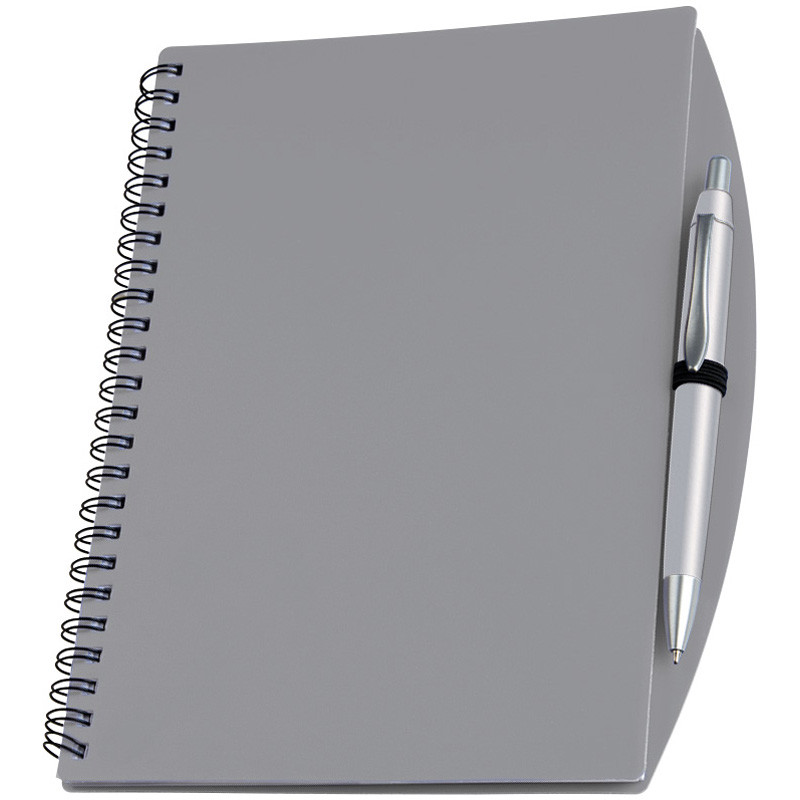 Spiral-Notizbuch mit Kugelschreiber / DIN A5 / 160 linierte Seiten / Farbe: grau