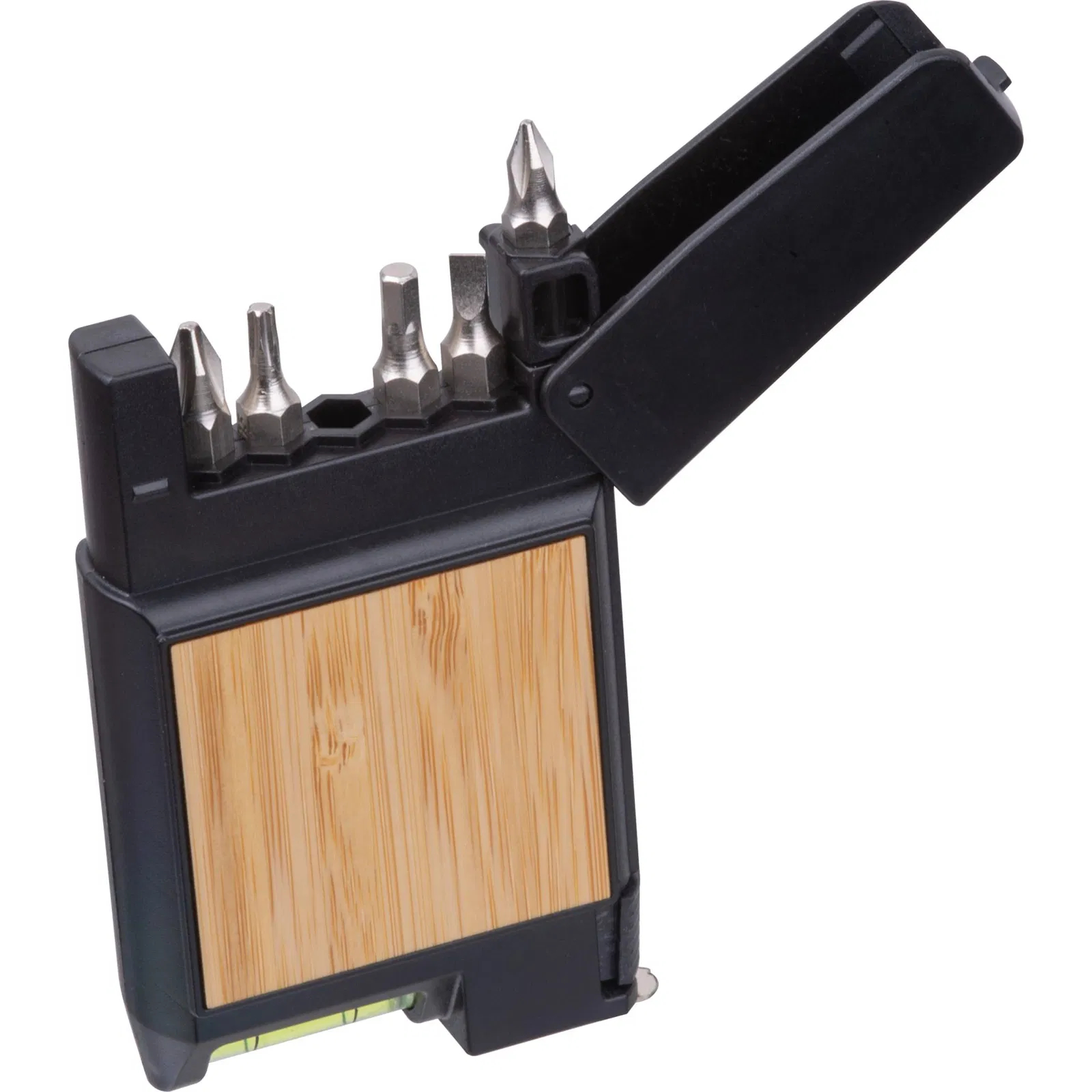 Stahlmaßband mit Gravur / 3m / mit Wasserwaage und 5 verschiedenen Bits