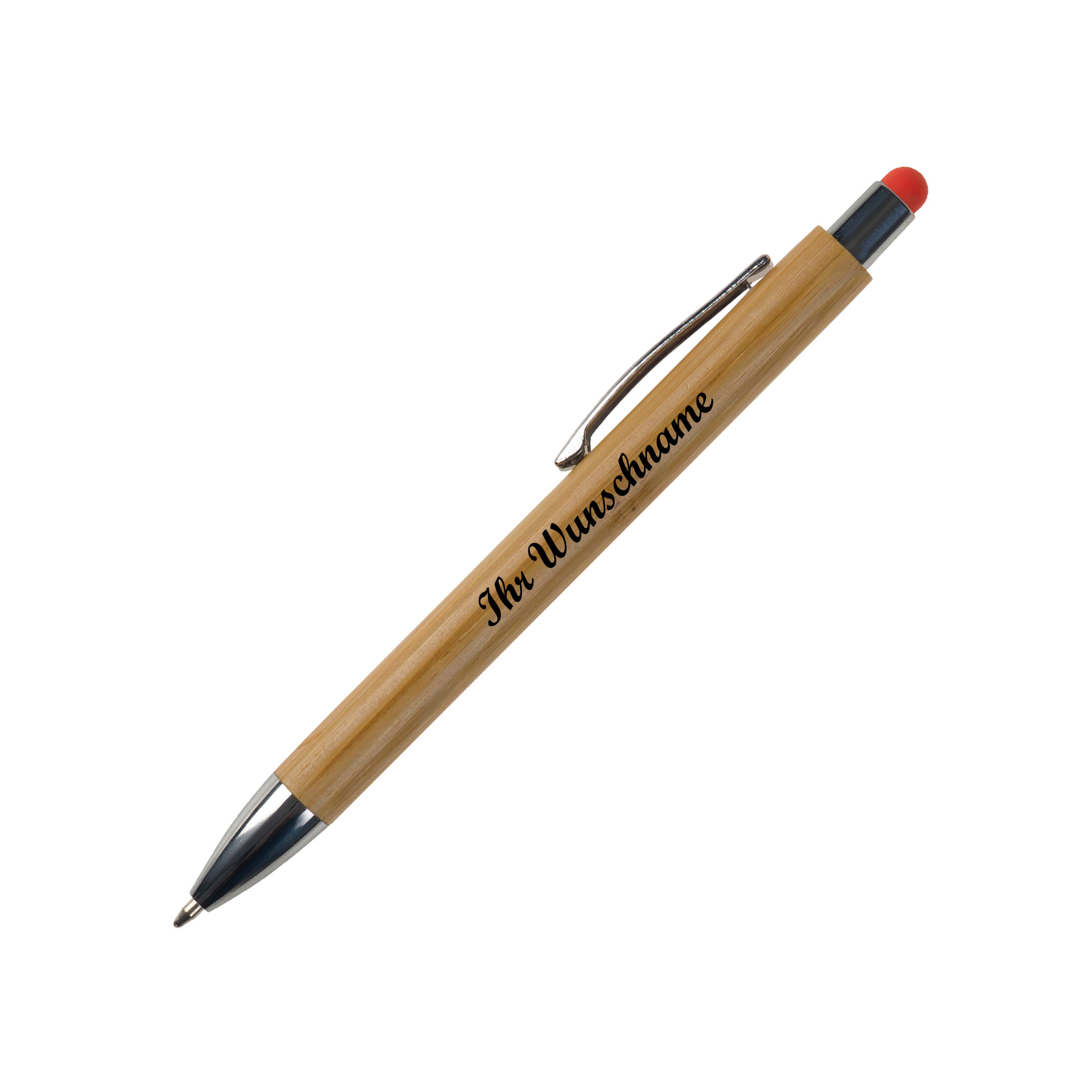 Touchpen Holz-Kugelschreiber mit Namensgravur - Stylusfarbe: orange