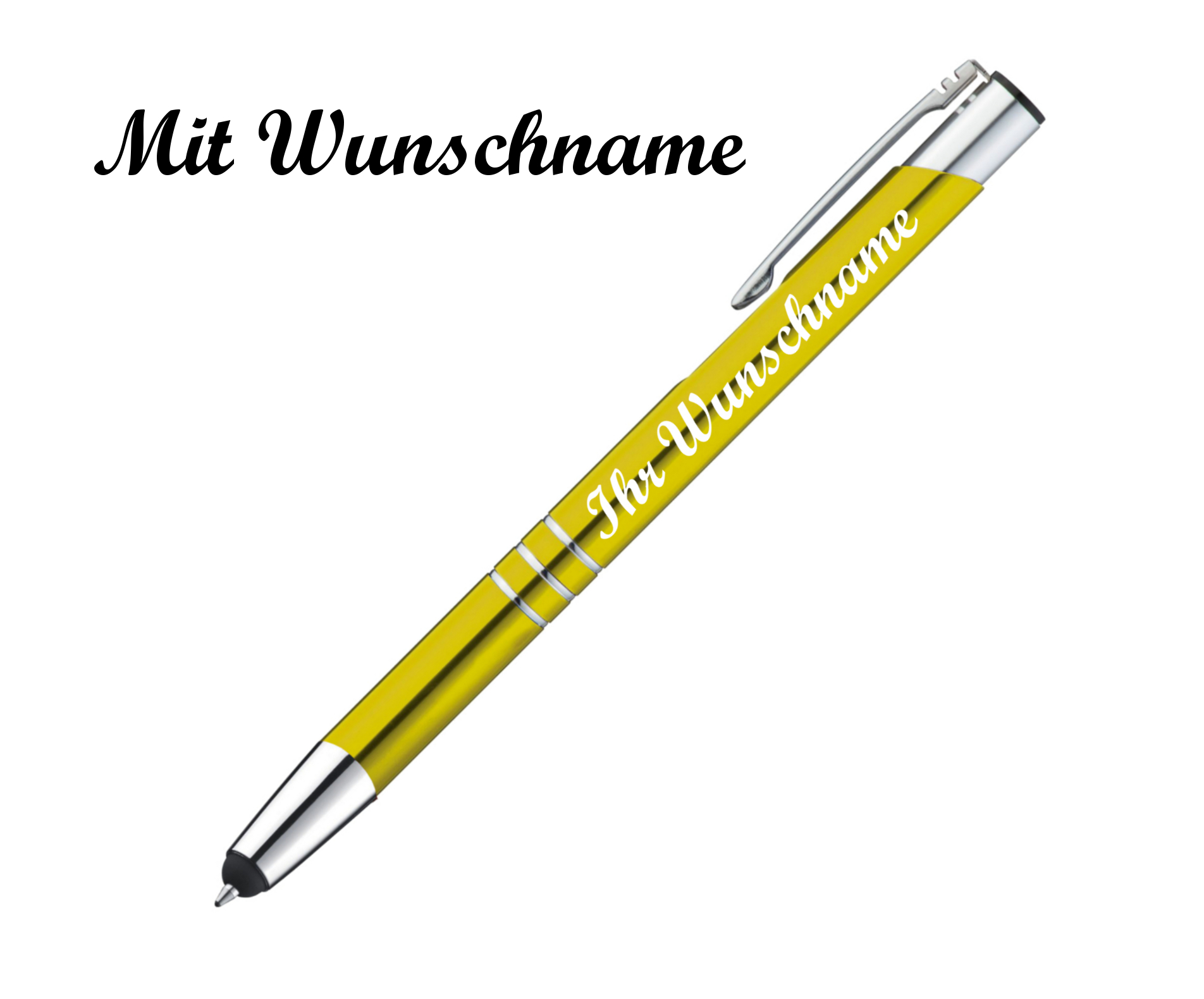 Touchpen Kugelschreiber aus Metall mit Namensgravur - Farbe: gelb