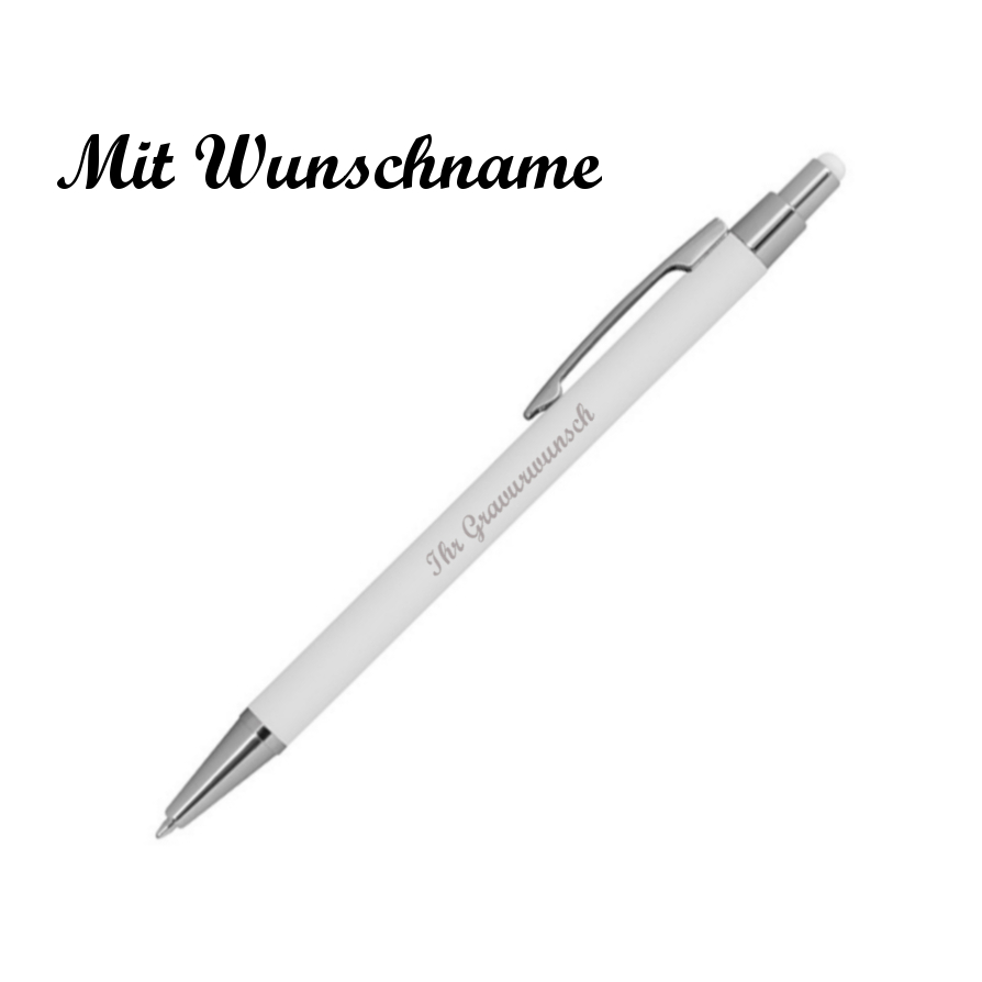 Touchpen Kugelschreiber aus Metall mit Namensgravur - gummiert - Farbe: weiß