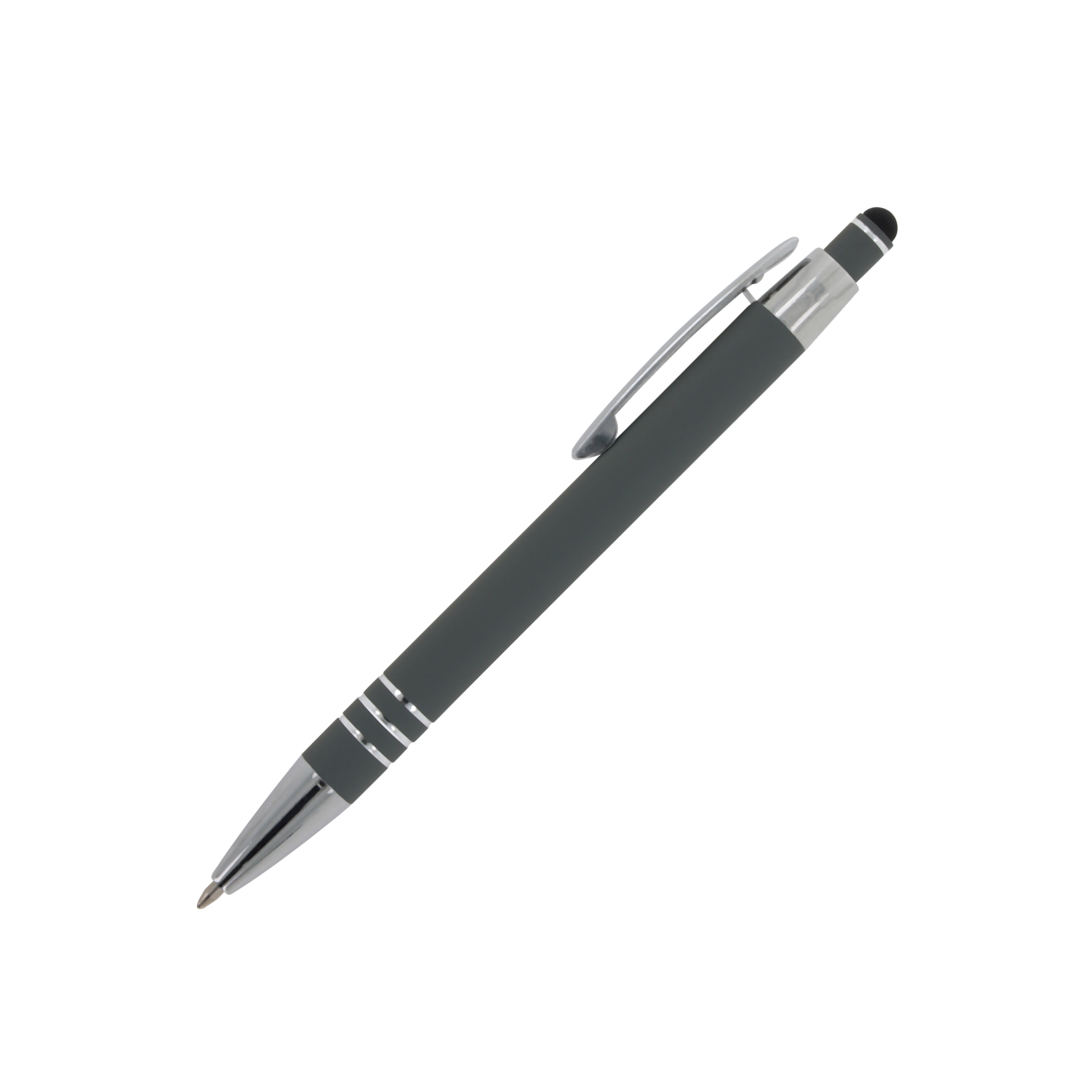 Touchpen Kugelschreiber / aus Metall / mit Soft-Touch / Farbe: grau
