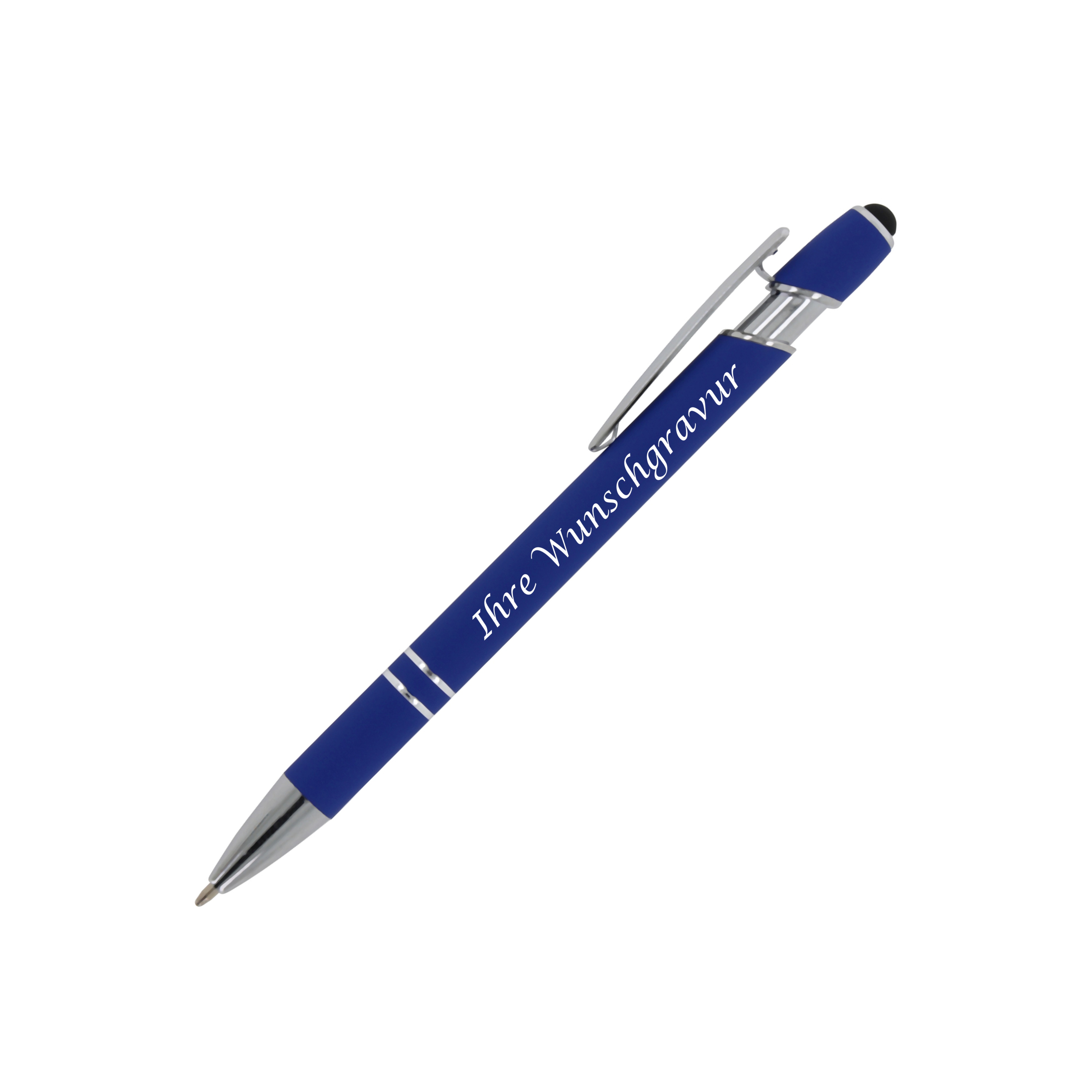 Produktinformationen "Touchpen Kugelschreiber mit Gravur / aus Metall / Soft-Touch / Farbe: blau"