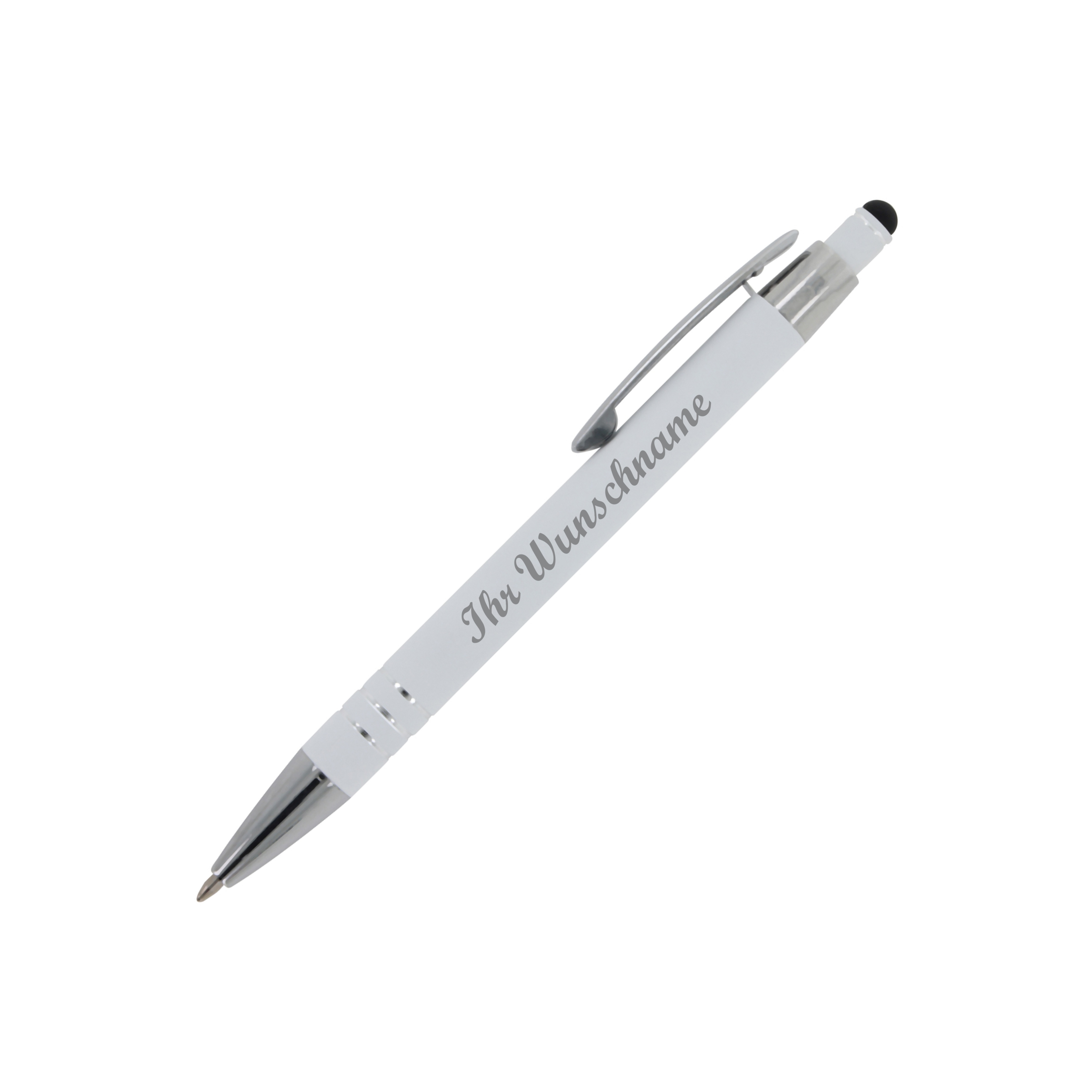 Touchpen Kugelschreiber mit Namensgravur - aus Metall - mit Soft-Touch - weiß
