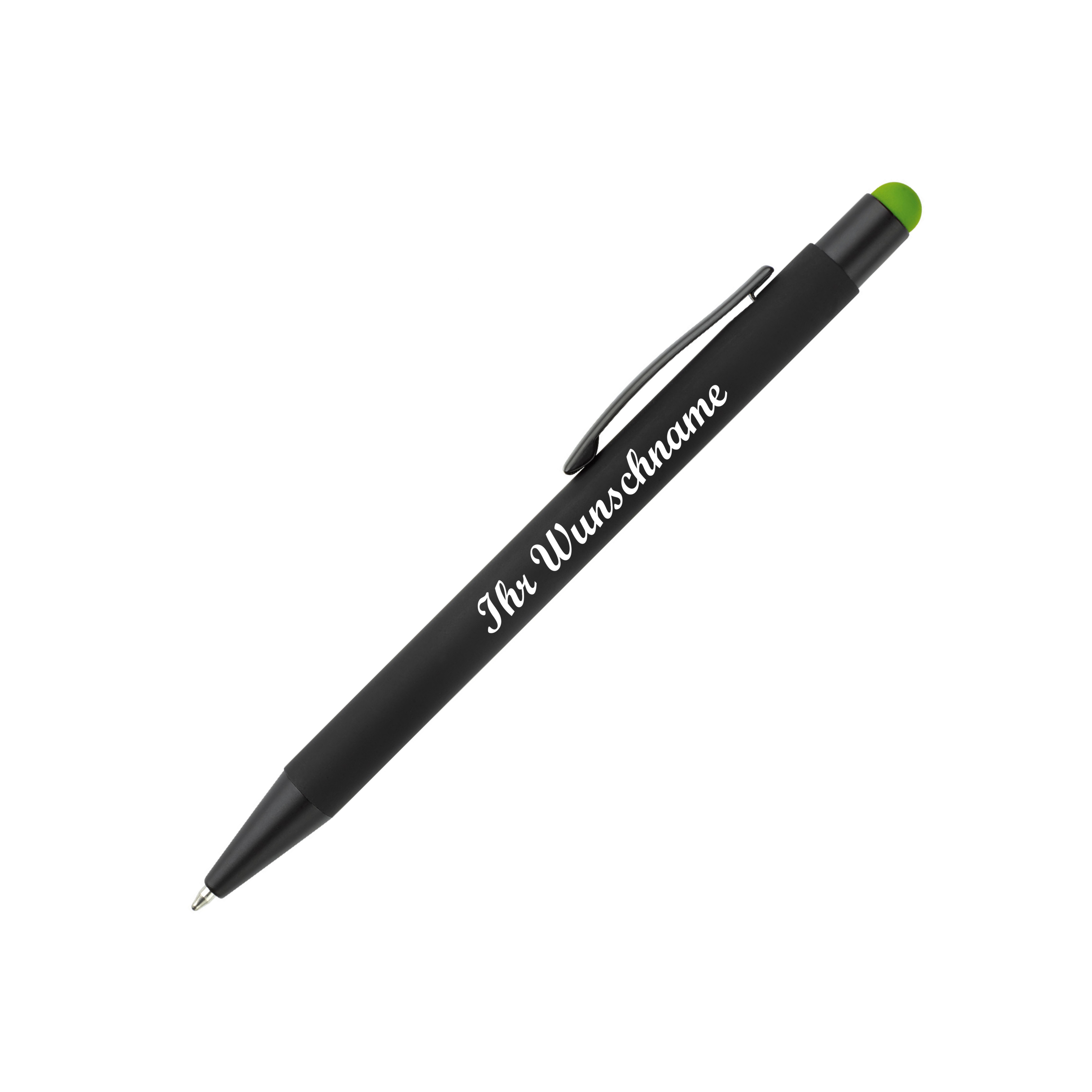 Touchpen Kugelschreiber mit Namensgravur - aus Metall - Stylusfarbe: hellgrün