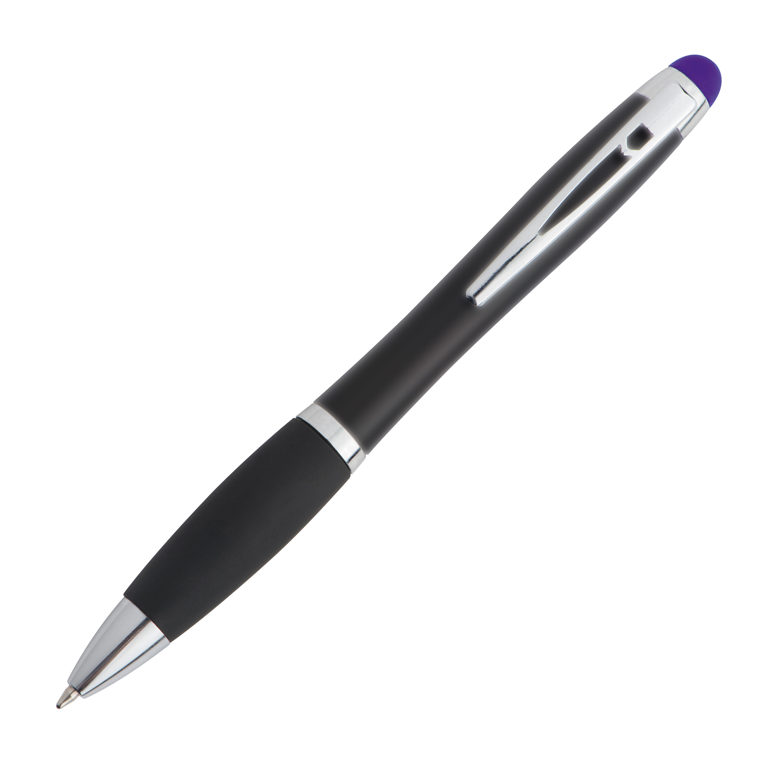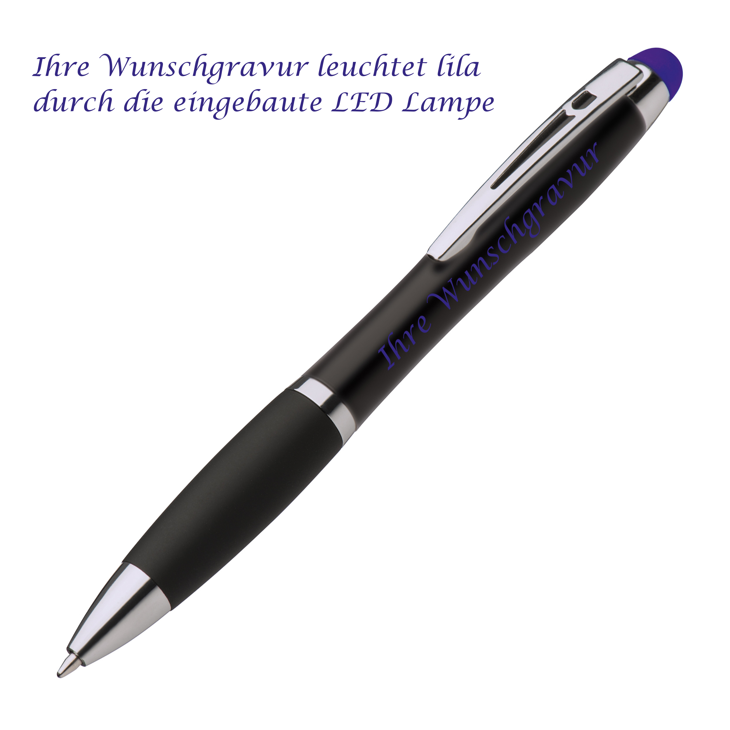 Touchpen Leucht-Kugelschreiber mit Gravur / Farbe: schwarz-violett