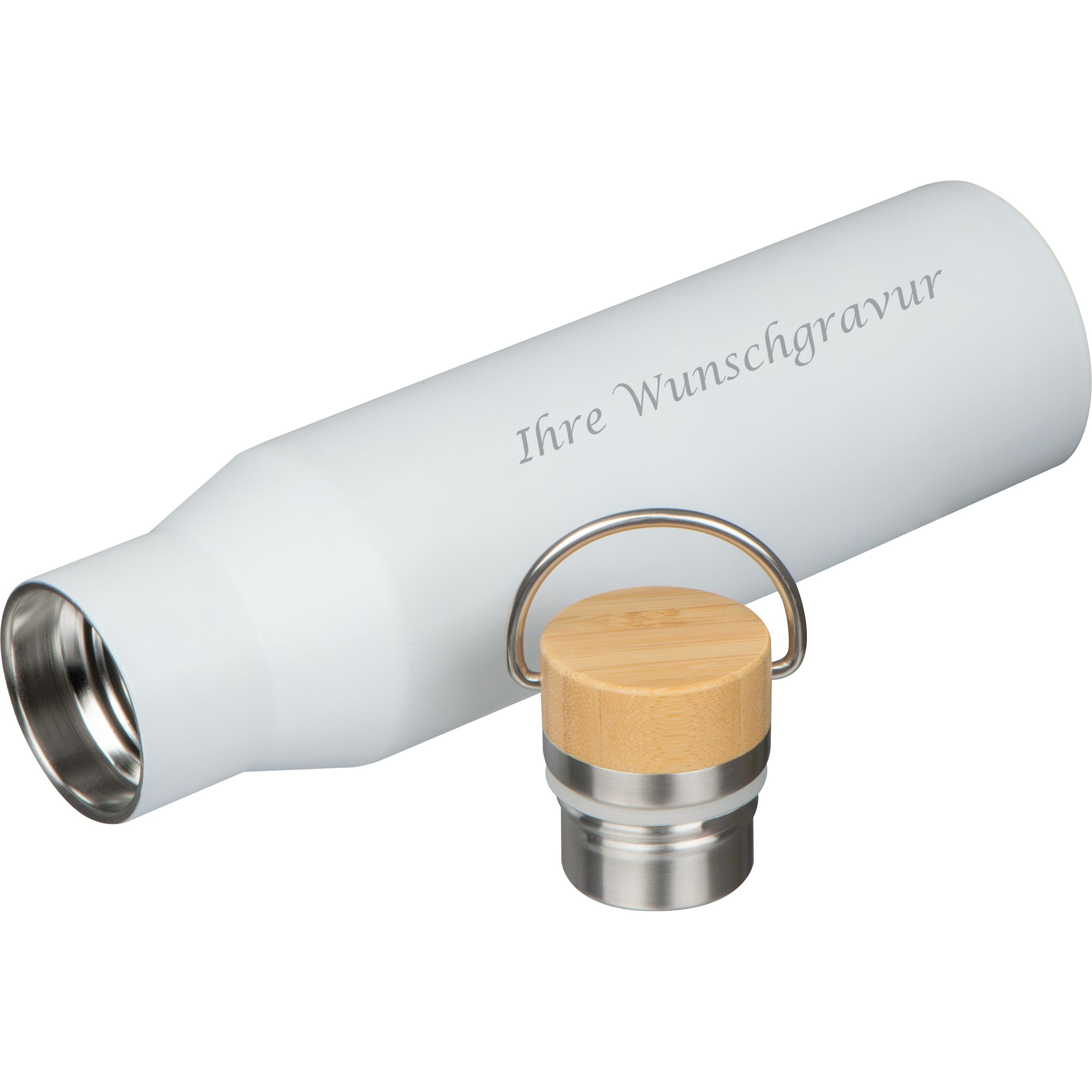 Trinkflasche aus recyceltem Edelstahl mit Gravur / 550ml / Farbe: weiß