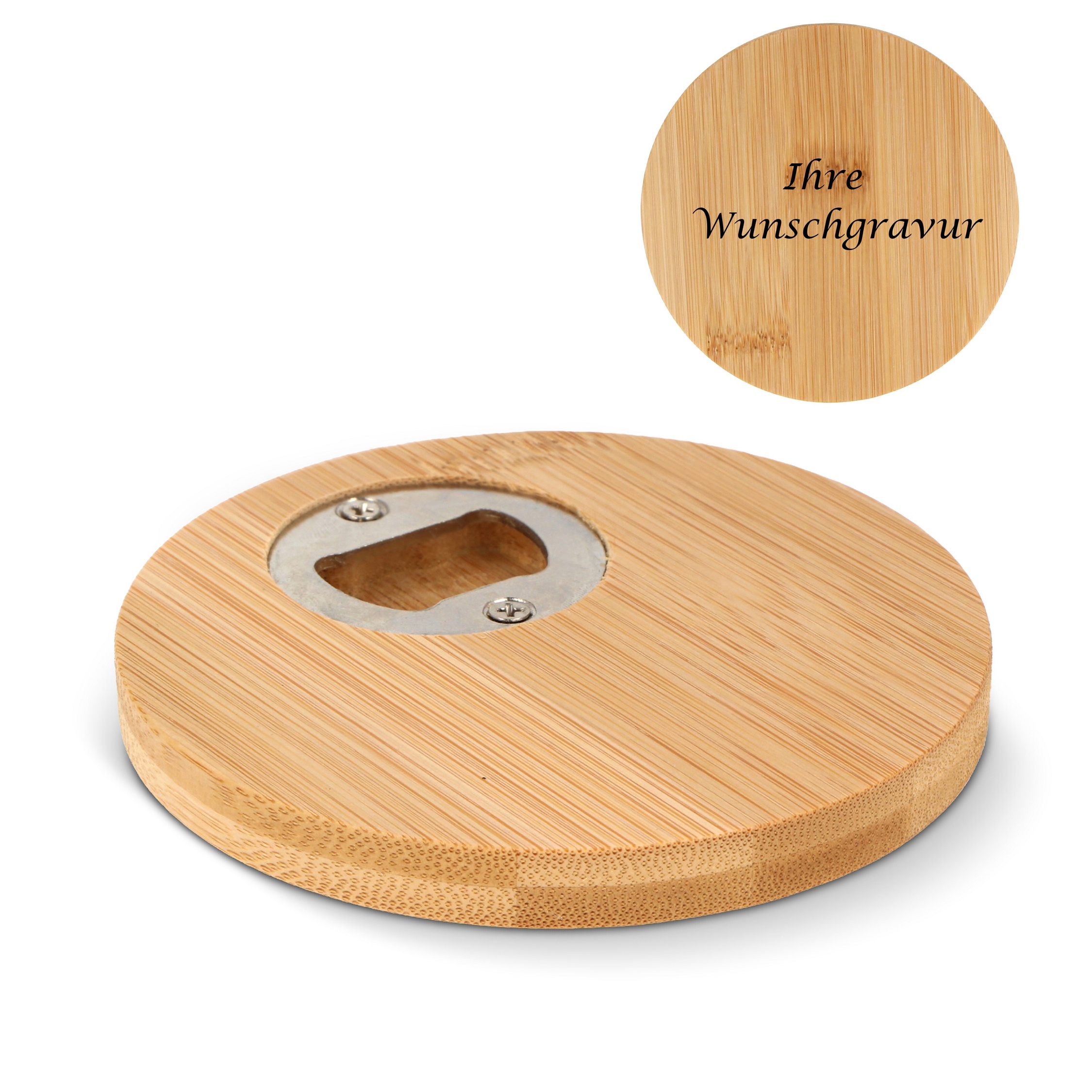 Untersetzer mit Flaschenöffner mit Gravur / aus Bambus