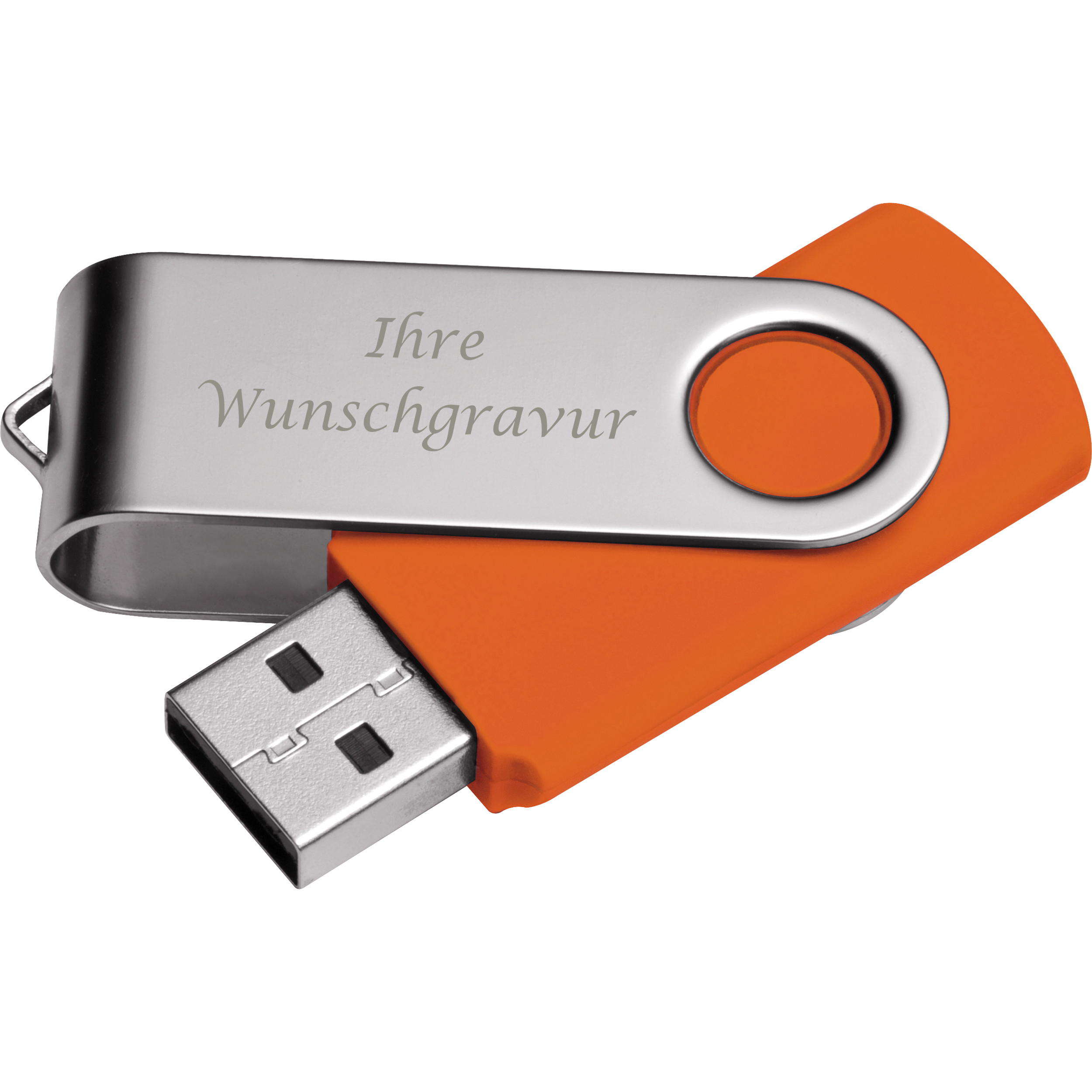 Produktinformationen "USB-Stick Twister mit Gravur / 32GB / aus Metall / Farbe: silber-orange"