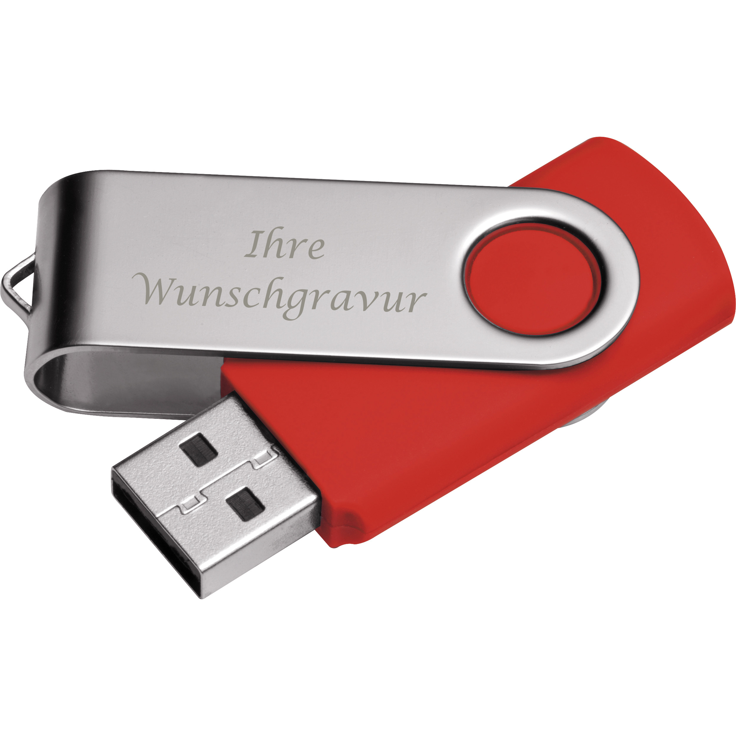 Produktinformationen "USB-Stick Twister mit Gravur / 32GB / aus Metall / Farbe: silber-rot"