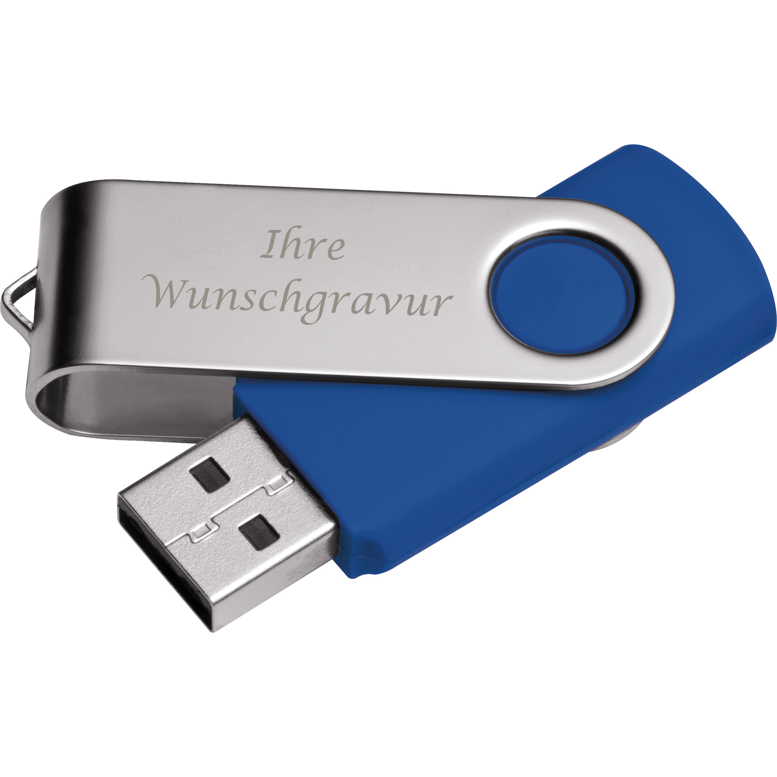 Produktinformationen "USB-Stick Twister mit Gravur / 8GB / aus Metall / Farbe: silber-blau"