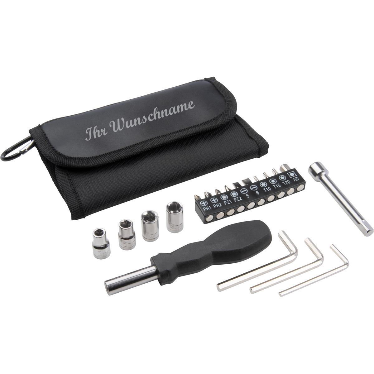 Werkzeugset mit Namensgravur - Schraubendreher, Nüssen, Bits, Verlängerungsstück