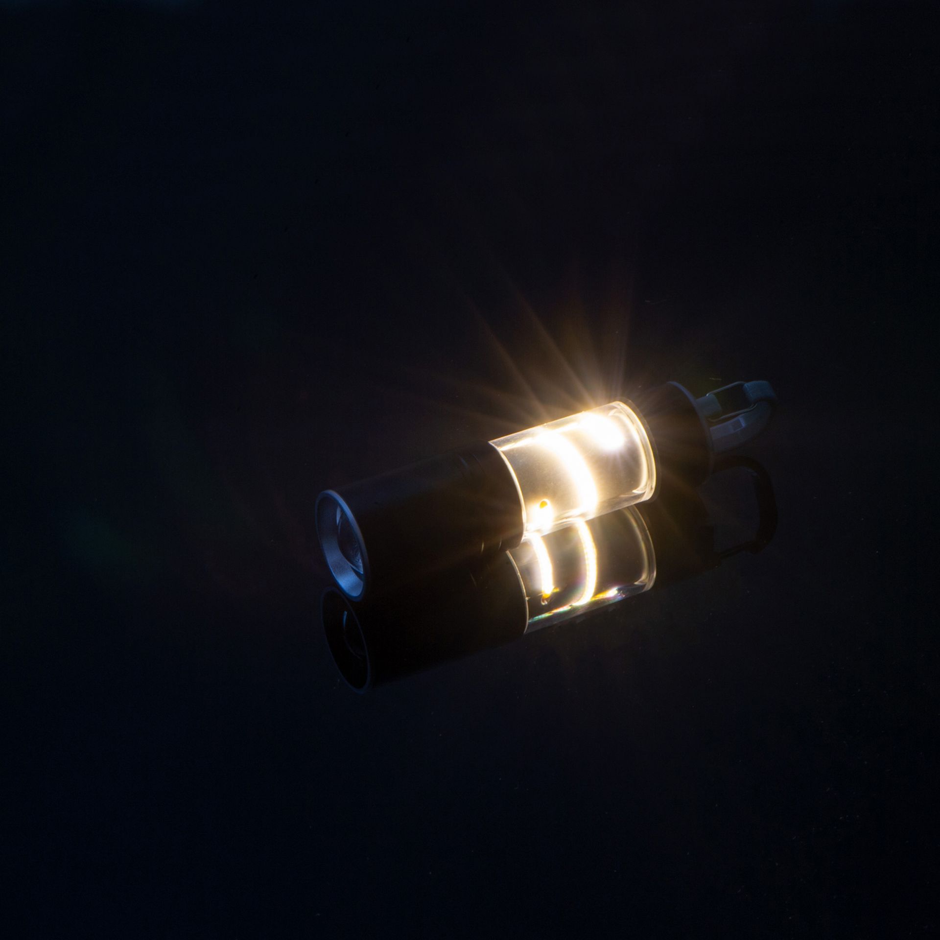 - die Lampe mit Blinkfunktion verfügt noch über einen verstellbaren Lichtkegel und eine Leuchtspirale am Schaft